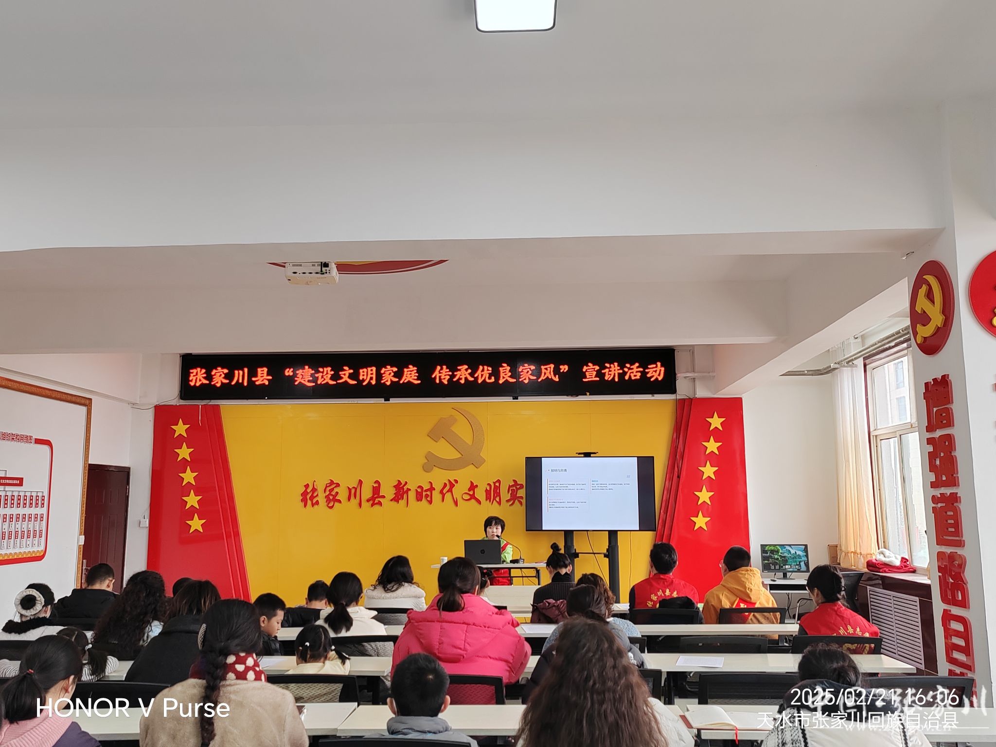 为进一步培育和践行社会主义核心价值观,大力营造家庭文明新风尚,近日,张家川县委宣传部、县新时代文明实践办在县新时代文明实践中心开展了以“建设文明家庭 传承优良家风”为主题的宣讲活动,全县40个单位干部职工及子女参加了此次活动。