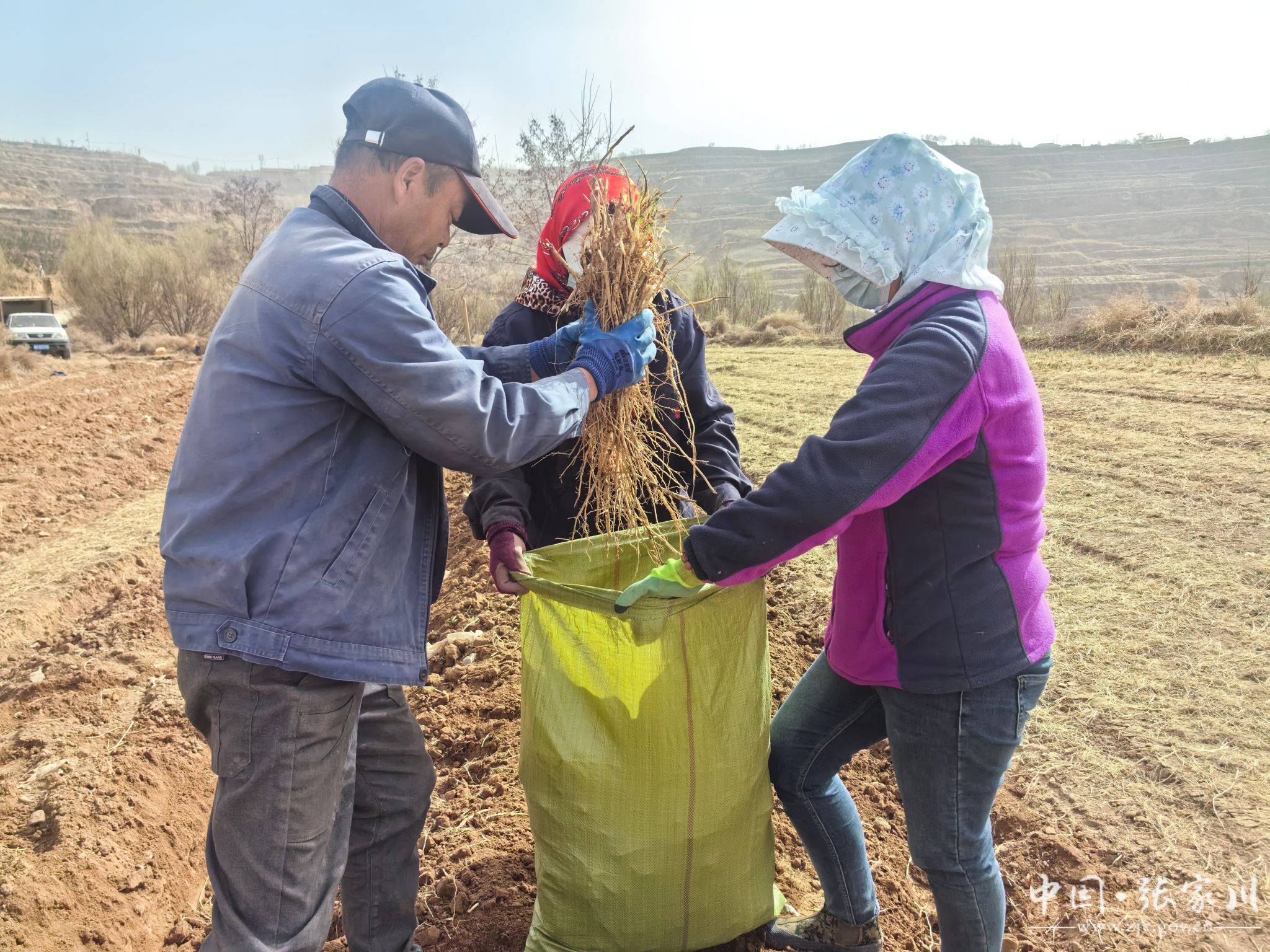 张家川县农裕农林产业开发有限公司负责人龙耀珠说:“这段时间天气回暖,正是起挖苗子的最好时间,我们去年的4月份育苗70亩,今年开始起苗,需要大量的工人,这段时间,每天都组织村里的劳动力参与黄芪起苗工作,大概一周左右结束,就开始种植。一部分会用于对外销售,其余主要用于农场自身种植。”
