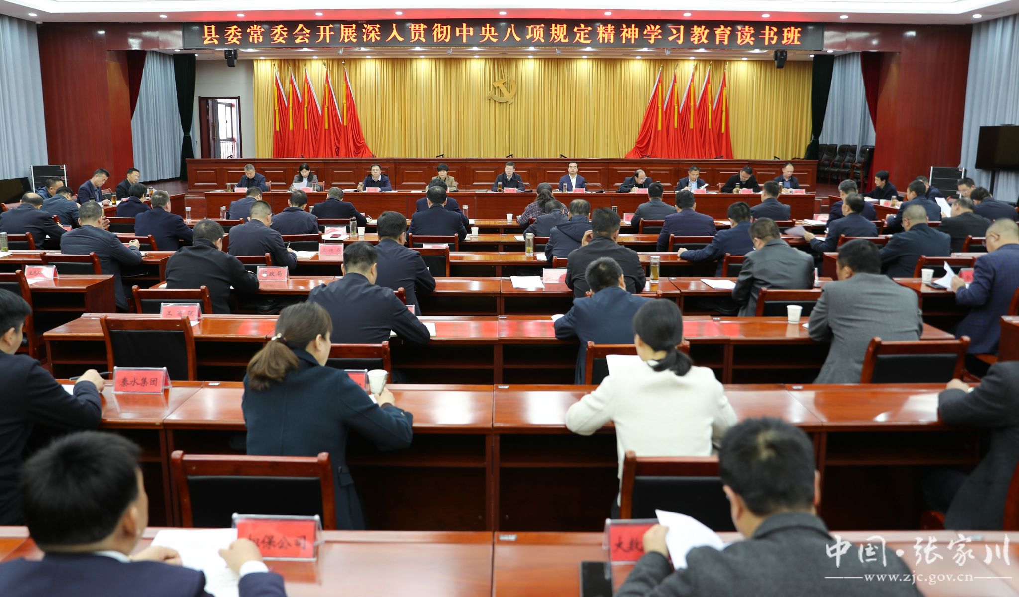 按照开展深入贯彻中央八项规定精神学习教育总体安排,4月3日,县委常委会开展深入贯彻中央八项规定精神学习教育读书班第一次集中学习,深入学习《中央政治局关于改进工作作风、密切联系群众的八项规定》和《中共中央政治局贯彻落实中央八项规定实施细则》精神、《习近平关于加强党的作风建设论述摘编》第一至第三专题。县委书记、县委党的建设工作领导小组组长张思佳主持学习会议并讲话,马创成、麻小梅、马庭坚等县四大组织领导参加学习。