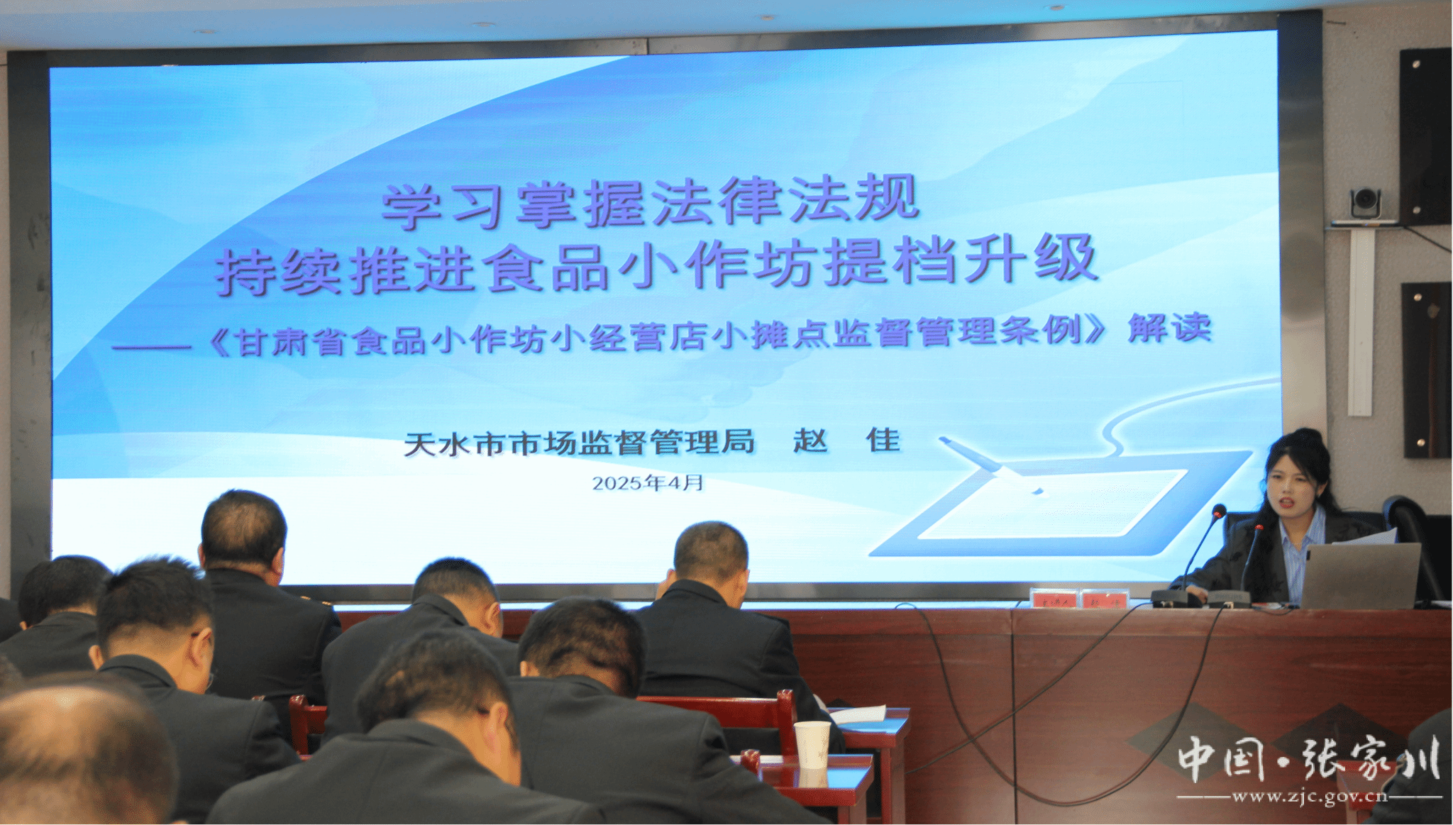 为进一步强化市场监管队伍建设,全面提升执法人员综合业务素质与行政执法能力,打造一支政治坚定、业务精通、作风过硬的市场监管执法铁军。4月23至4月24日,张家川县市场监督管理局邀请市局专业人员围绕“三品一特”、行政执法等重点,针对日常监管和执法办案短板弱项开展综合业务暨行政执法能力提升培训活动。各乡镇市场监管所、业务股室及执法队的50余名执法人员参加培训。