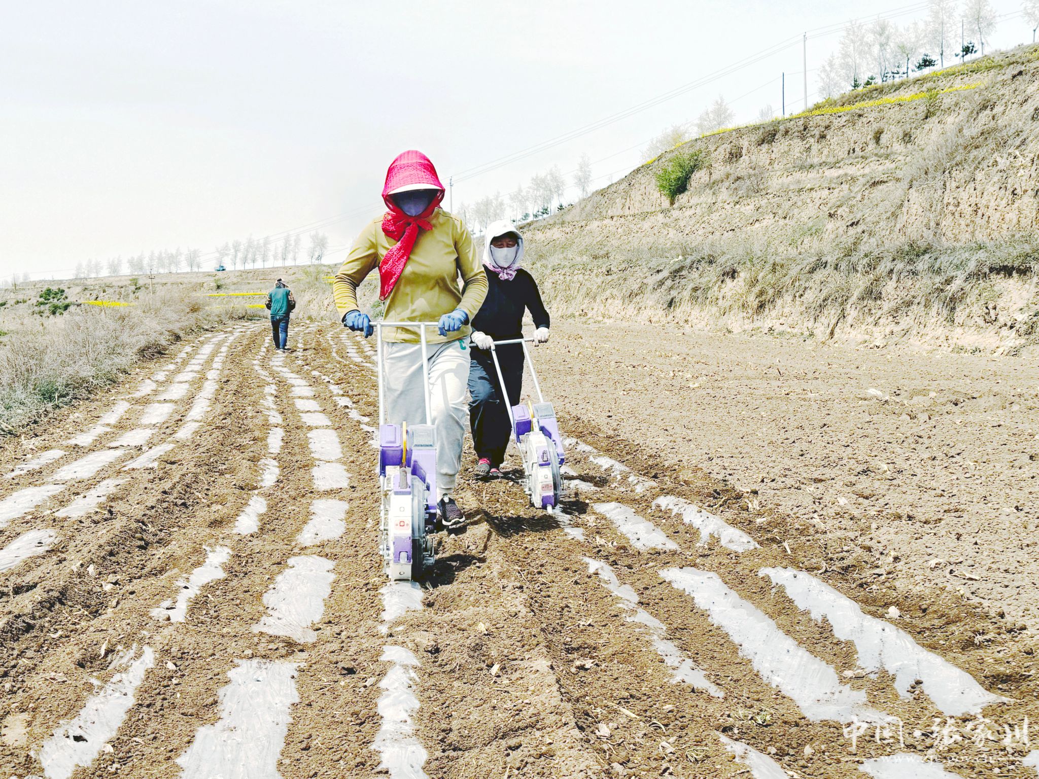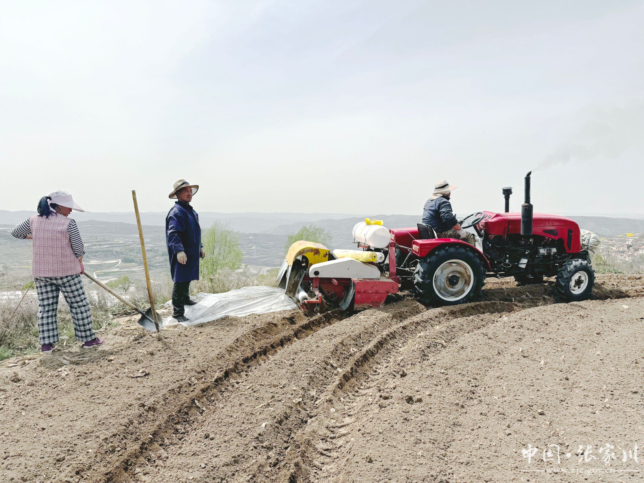 春日的张家川县梁山镇,地膜在阳光下银光闪烁,与来回耕种的群众勾勒出一幅生机勃勃的春耕画卷。