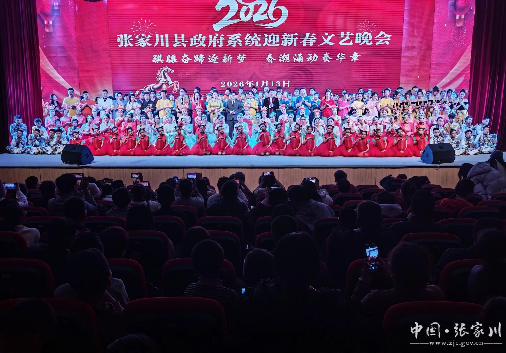 “骐骧奋蹄逐新梦,春潮涌动奏华章”。1月13日晚,张家川县政府系统2026年迎新春文艺汇演在县影视中心精彩上演。演出以喜庆热烈、气韵恢宏的旋律,为迎接新年的到来奏响华美乐章、献上视听盛宴,现场座无虚席,干部职工与群众欢聚一堂,共赏精彩演出、共话新春愿景。