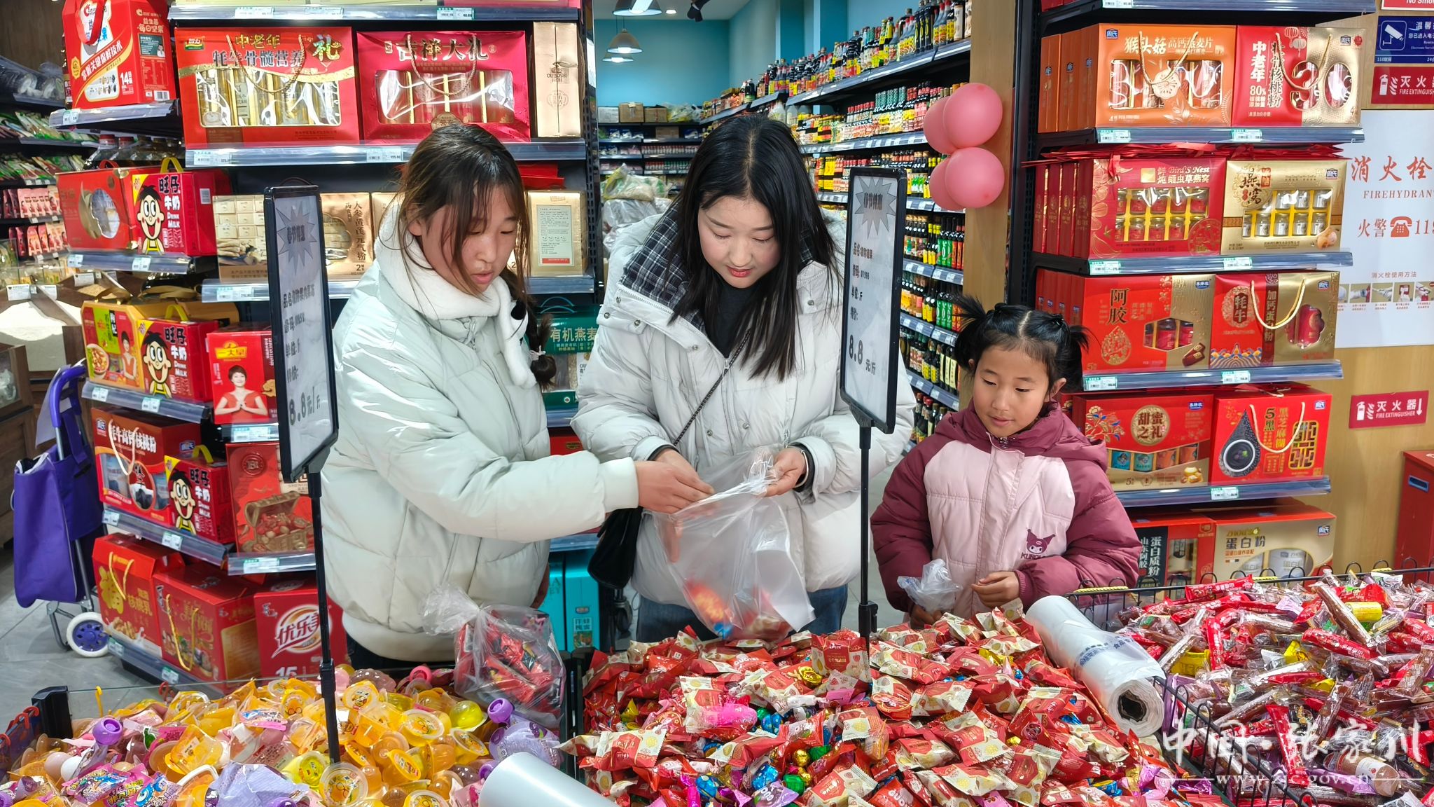 各大商家抢抓新春消费旺季,密集推出惠民让利促销活动,持续点燃群众消费热情。麦蒙超市于2月8日至2月23日开展为期十五天的春节促消费活动,设置消费满58元抽奖环节,奖品涵盖电动车、电锅、洗衣液、米面粮油、粉条等实用好物,优惠力度大、互动性强,吸引众多市民到场采购。顾客高平霞高兴地说:“买了一百多元商品,抽中两个二等奖,领到两口电锅,既实惠又幸运,真切感受到了春节的喜悦和商家的诚意。”