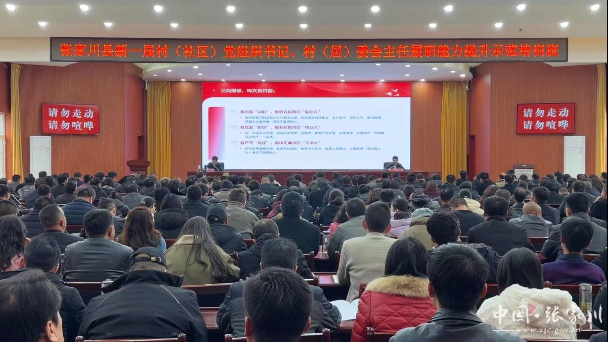 3月3日,张家川县新一届村(社区)党组织书记、村(居)委会主任履职能力提升示范培训班在县委党校开班。县委书记何敬忠出席开班式并讲授开班“第一课”,聚焦“如何当好一名新时代村干部”,为全县255个行政村、7个社区新任党组织书记、村委会主任明晰思路、传授方法、压实责任。县委常委、组织部部长王国晟主持开班式。