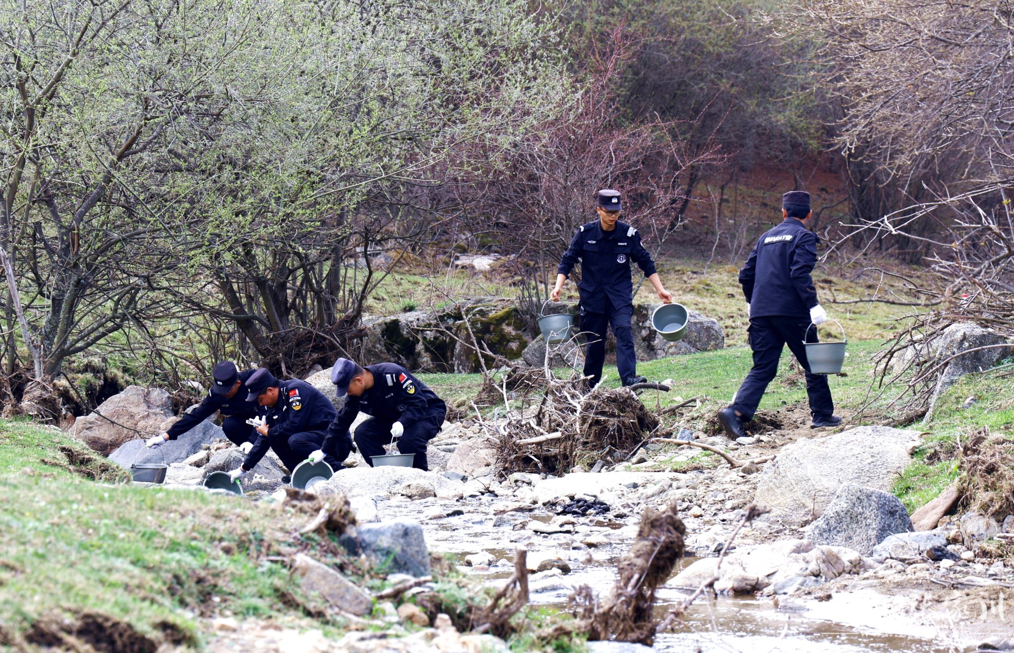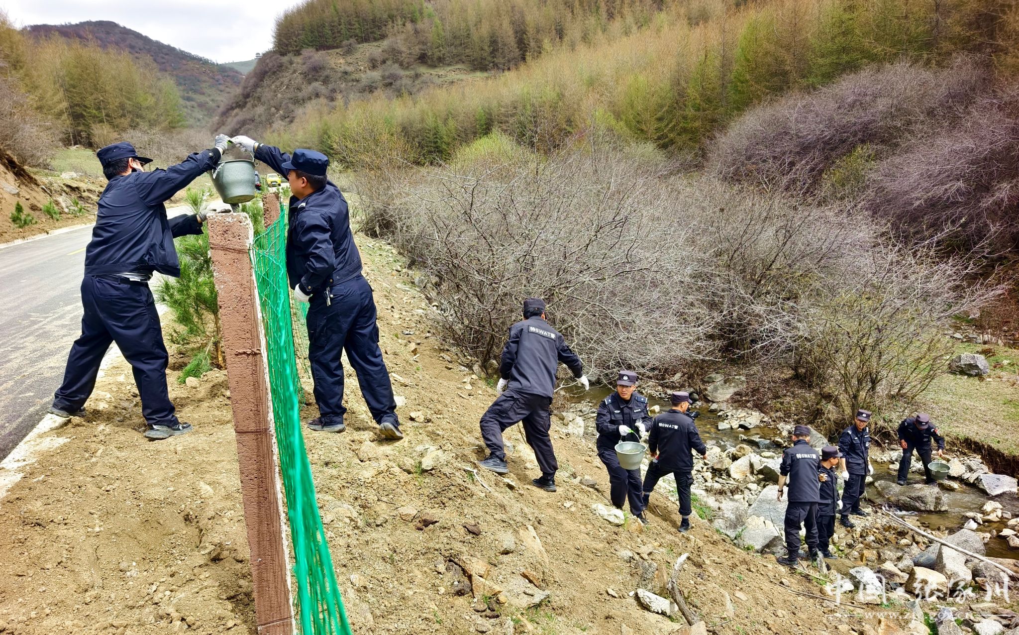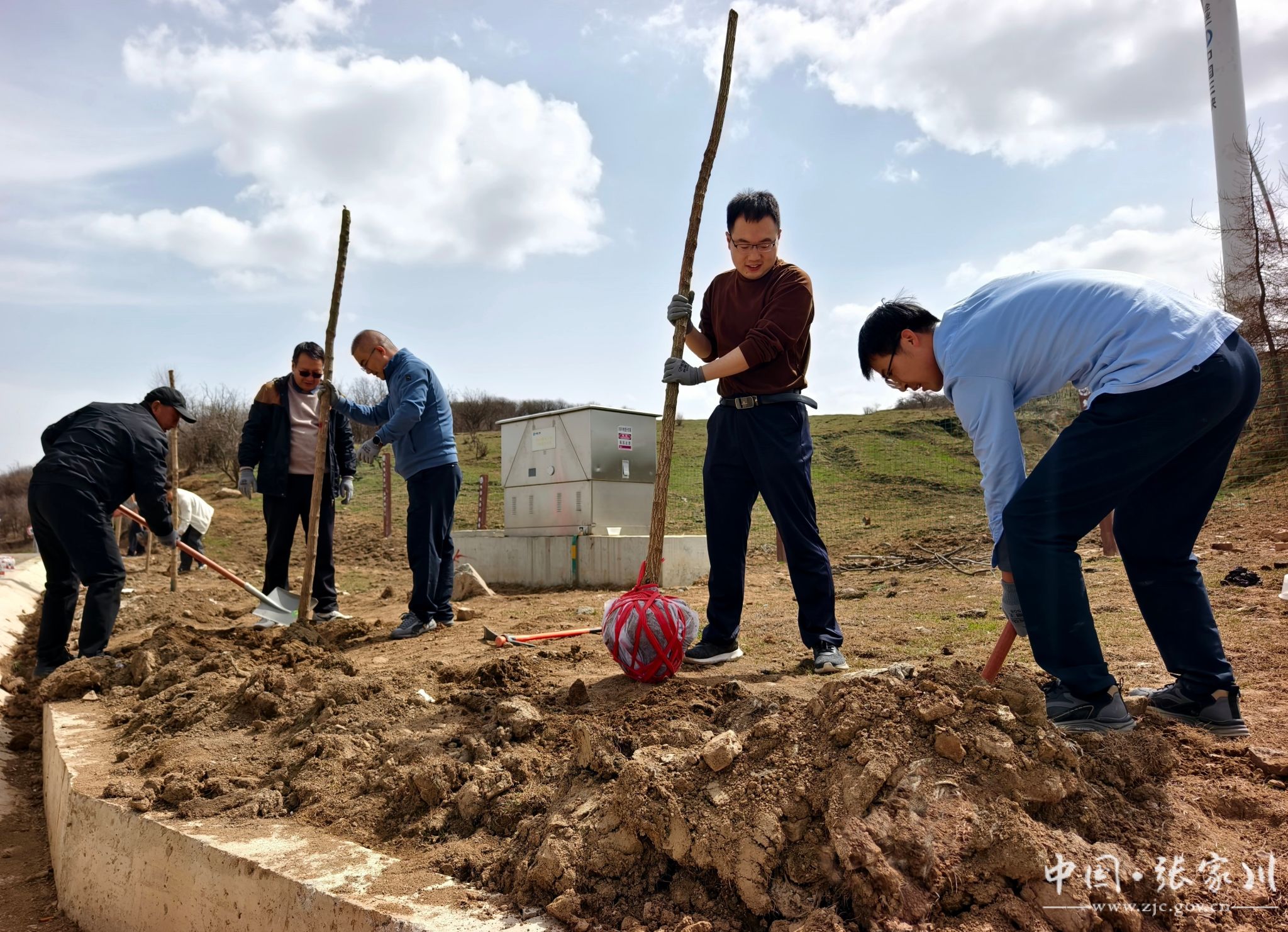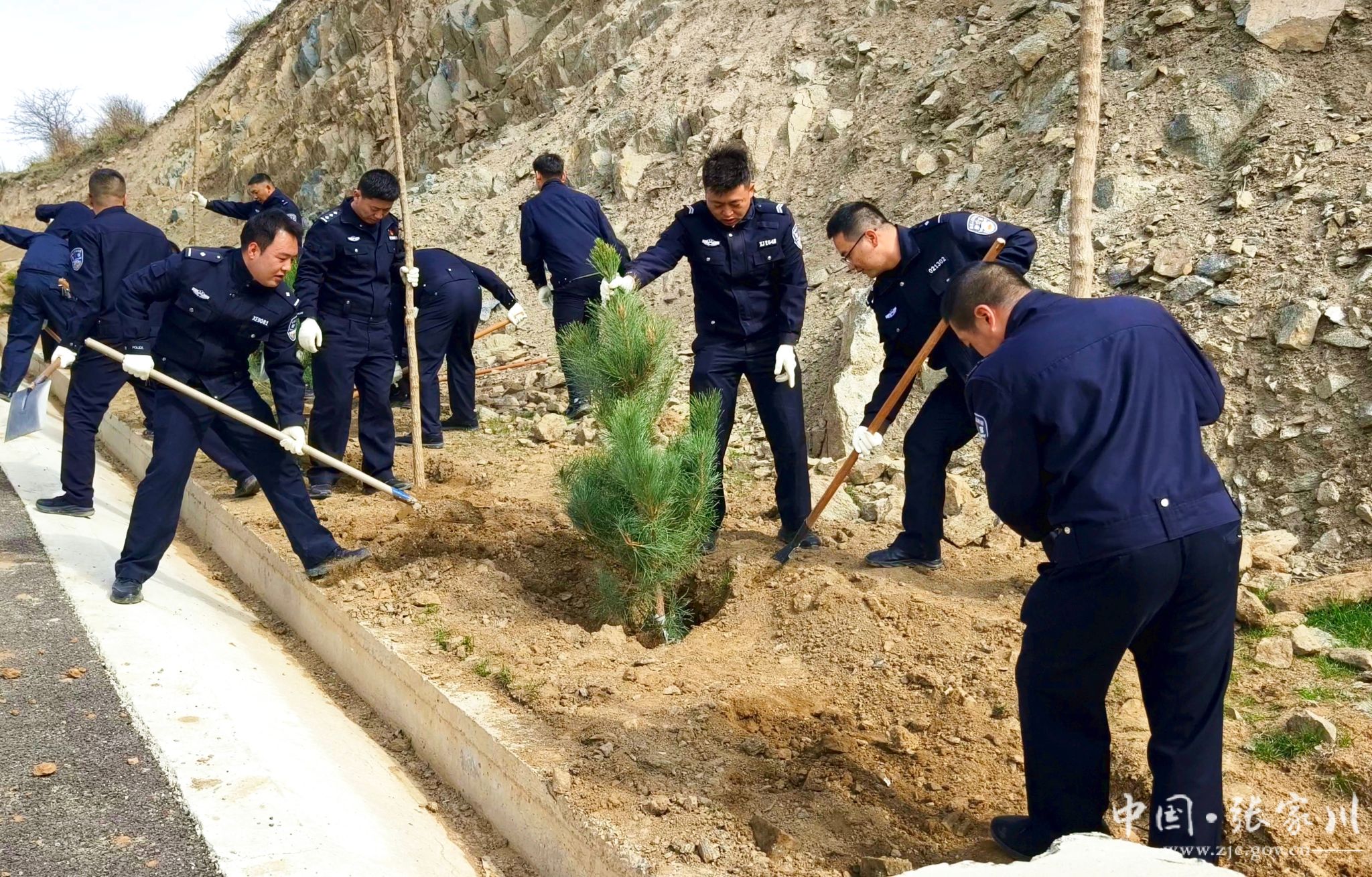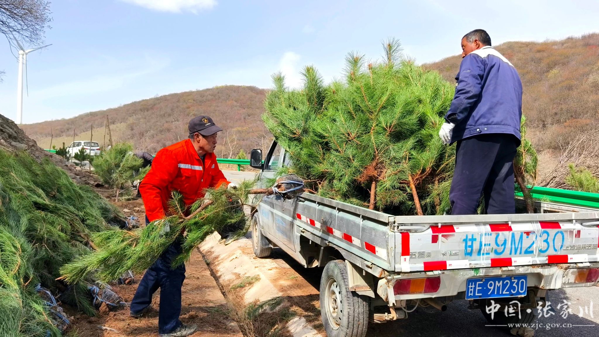植树现场,干部群众分工明确、配合默契。大家严格按照植树技术规范,挥锹铲土、扶苗定植、培土围堰、精心浇灌,每一道工序都认真细致、规范操作。“虽然今天风有点大,但大伙儿的干劲很足。能亲手在关陇古道上栽下几棵树,为家乡添一份绿,再累也值得。” 正在挥锹培土的县水务局干部马智录笑着说。经过一番辛勤劳作,一株株新栽的油松和五角枫错落成行、迎风挺立,为春日的关陇古道增添了盎然生机。