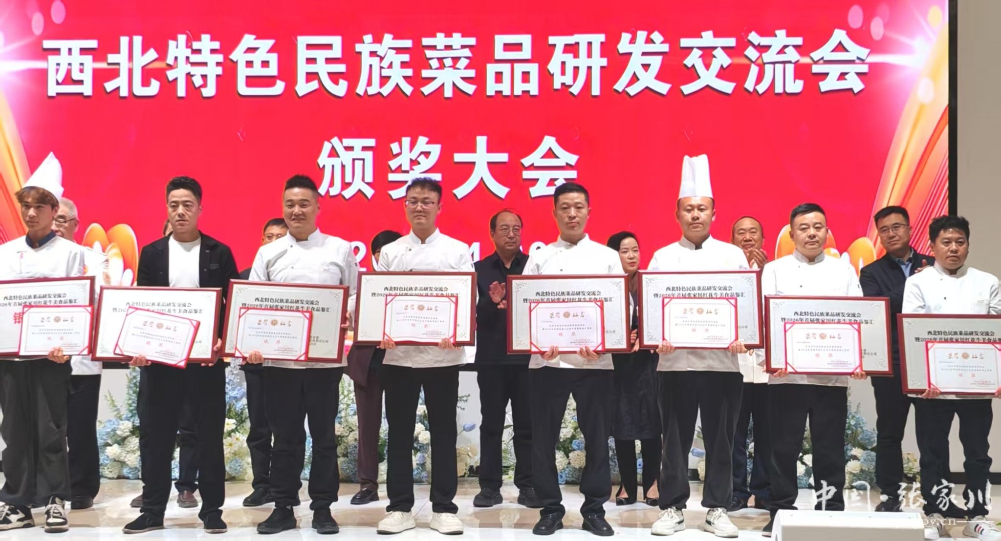 4月20日下午,西北特色民族菜品研发交流会暨2026年首届张家川红花牛美食品鉴汇烹饪大赛颁奖大会,在张家川县关麓陇景礼宴中心举行。来自西北各地的20支专业餐饮团队同台竞技,各大奖项现场揭晓。