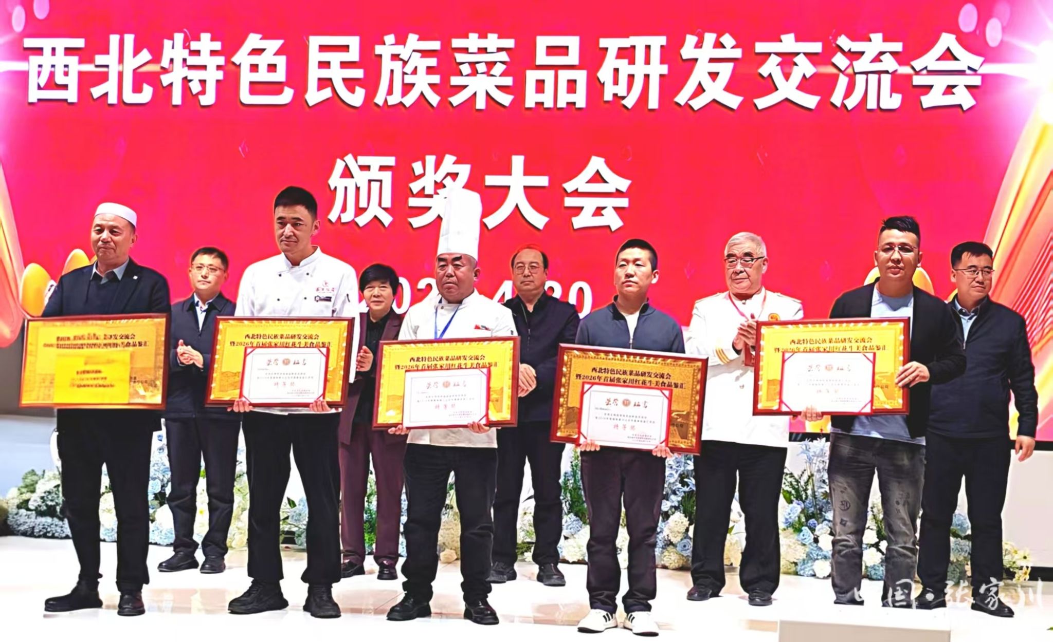 金奖获奖团队:宁夏彭城餐饮有限公司彭城大饭店、兰州伊祥兰牛肉面、张家川西客巷红花牛烧烤、张家川宴兰楼餐饮服务有限公司、青海雅君餐饮公司、张家川锦德瑞实业有限公司、临夏现代职业学院百花烹饪学院。