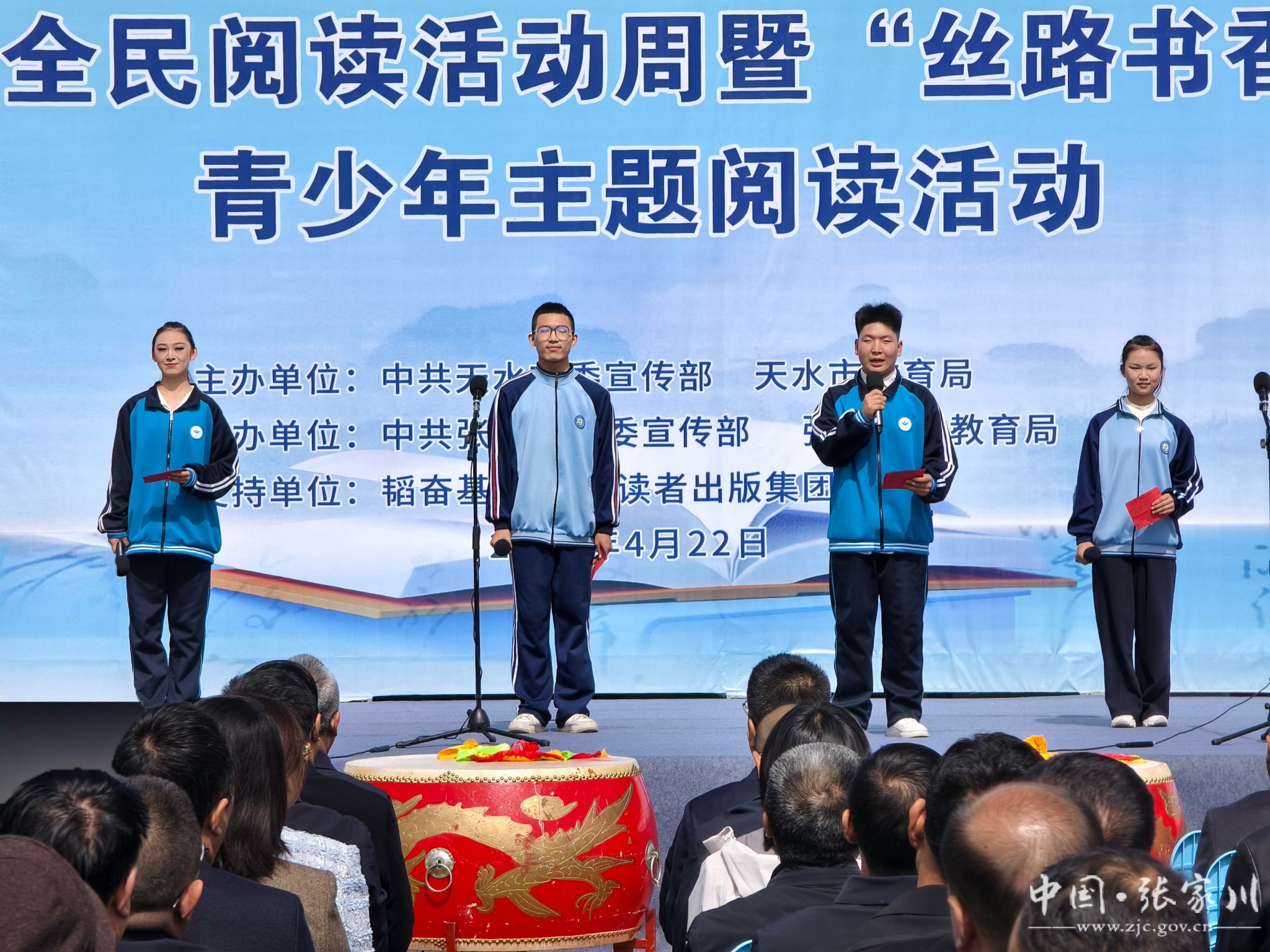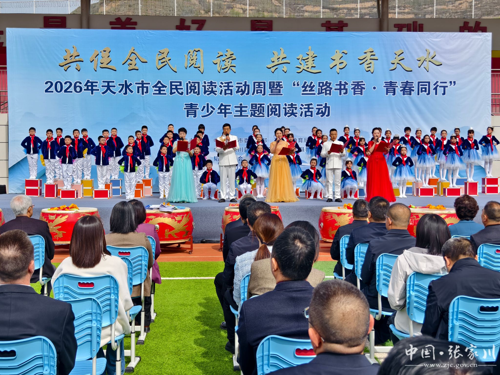 春和景明,书香致远。4月22日,在第31个世界读书日到来之际,2026年天水市全民阅读活动周暨“丝路书香•青春同行”青少年阅读主题活动在张家川县启幕。活动由中共天水市委宣传部、天水市教育局主办,中共张家川县委宣传部、张家川县教育局承办,读者出版集团、韬奋基金会支持。市委常委、宣传部部长王文东,市人大常委会副主任任佩光,市政协副主席焦继军出席活动。市政府副市长汪小娟主持,张家川县委书记何敬忠致辞。市直相关单位负责人,各县区宣传部部长参加活动。