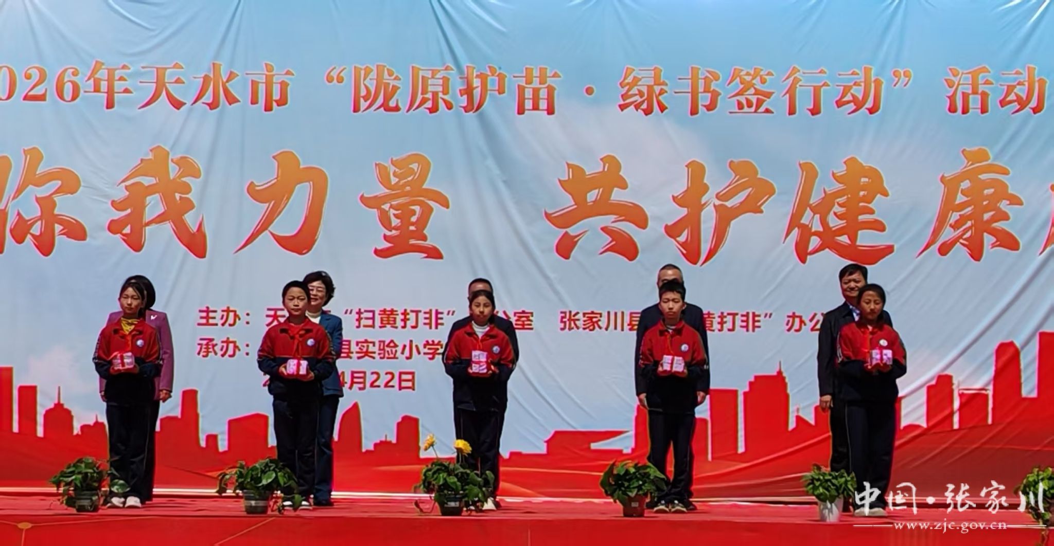 同期,2026年天水市“陇原护苗·绿书签行动”在张家川县实验小学举行,以“汇聚你我力量 共护健康成长”为主题。参会领导和嘉宾现场向学生代表发放了绿书签,家校社代表共同宣读倡议书,现场公布上年度省、市、县“我的书屋·我的梦”阅读实践活动获奖名单,甘肃易德集团向学生代表捐赠学习用品。