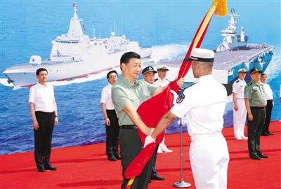习近平出席海军三型主战舰艇集中交接入列活动