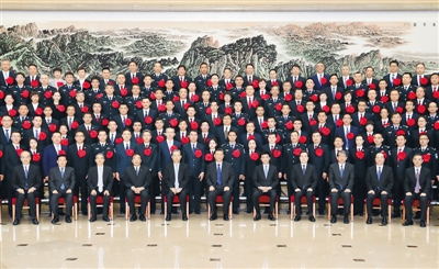 上午10时,习近平等来到京西宾馆会议楼前厅,全场响起热烈掌声。习近平等走到代表们中间,同大家亲切交流并合影留念。