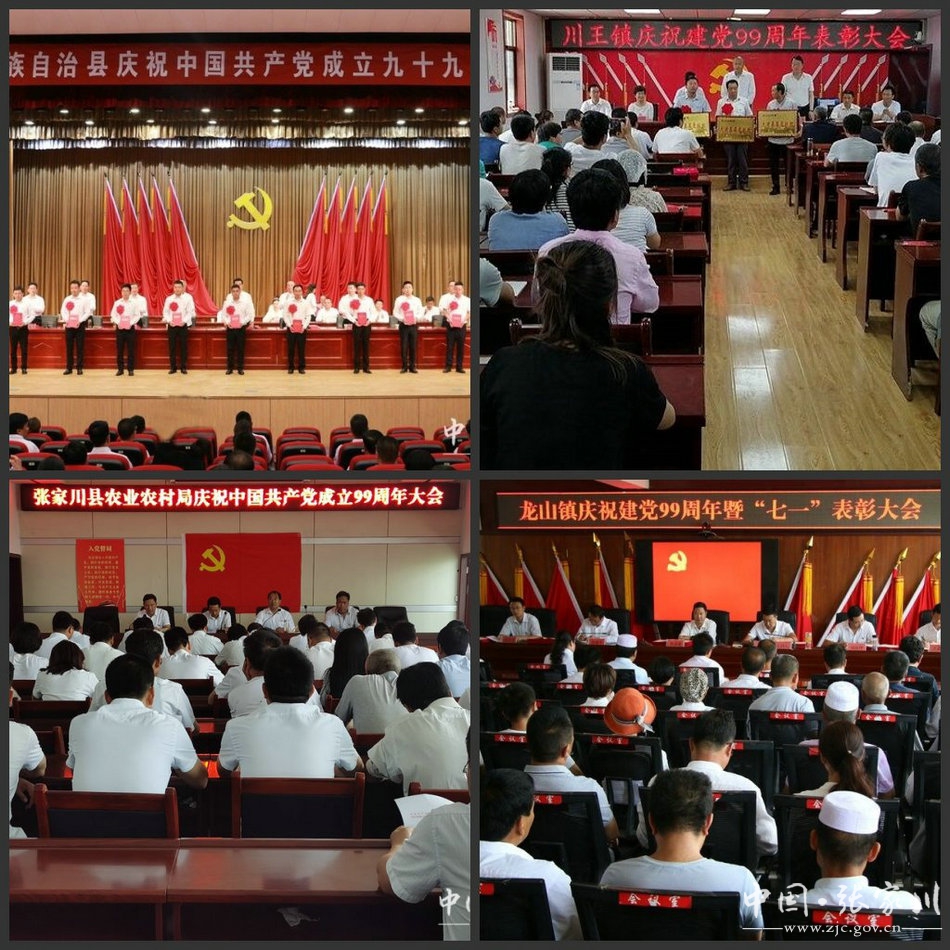 “七一”期间,全县各级党组织广泛开展评选表彰活动,引导干部群众学典型、赶先进、创标兵。为充分发挥党员的先锋模范作用,张家川县在庆祝中国共产党成立99周年大会上表彰了一批优秀共产党员、优秀党务工作者、优秀村党支部书记、优秀村第一书记、工作队队员和先进基层党组织。全县15个乡镇党委及各村党支部相继召开庆祝中国共产党建党99周年暨表彰大会,分别对表现突出的优秀共产党员、优秀党务工作者、优秀驻村第一书记和先进基层党组织进行了表彰奖励。县农业农村局等部门也利用庆祝活动,对各行各业涌现出来的优秀共产党员、优秀党务工作者、先进基层党组织进行了表彰和奖励。通过推介和表彰先进典型,加大宣传力度,营造浓厚氛围,也充分展示了新时期各级党组织和优秀共产党员的精神风貌。同时,创建了一批“文明单位”、选树了一批“张家川好人”、“道德模范”、“优秀志愿者”等优秀典型,彰显了全县新时代文明实践成效,弘扬了时代新风采。