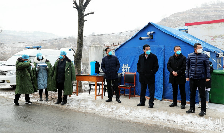 在连五乡三合村,为切实做好村级疫情防控工作,保障群众身体健康和生命安全,村干部和驻村帮扶工作队冒着严寒张贴宣传海报,并入户宣传新型冠状病毒感染的肺炎预防知识,劝阻村民不要外出,加强交通卡口人员检测,严格落实流动人口登记制度,入户开展科普宣传,引导群众不出门、不走访、不流动。同时,做到理性设卡,不用土堆和杂物封路,采取拉条幅和人工留守的方式,确保120生命通道时刻保持通畅。