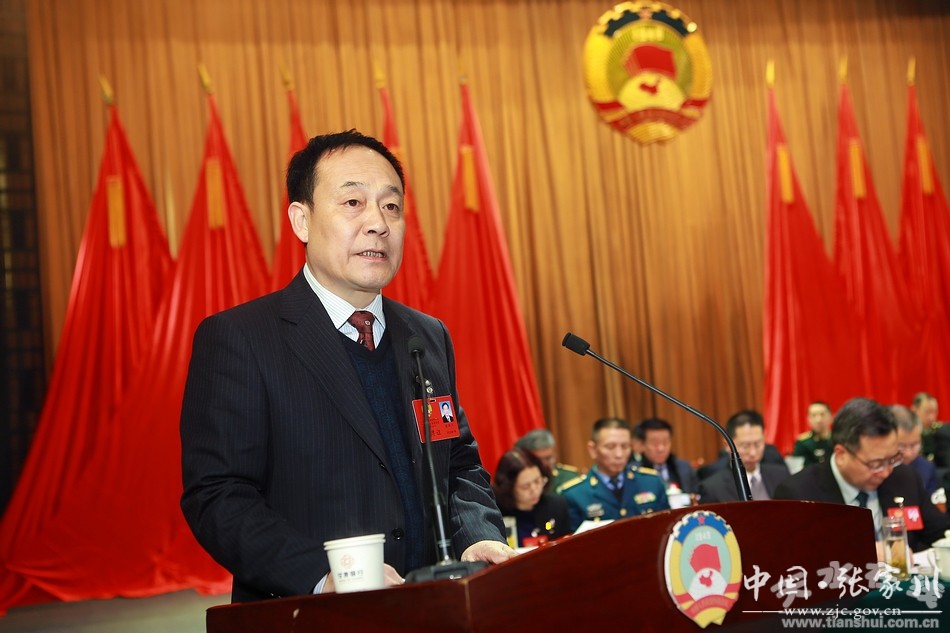 (市政协党组副书记、副主席王振宇代表政协天水市第七届委员会常务委员会作工作报告。)