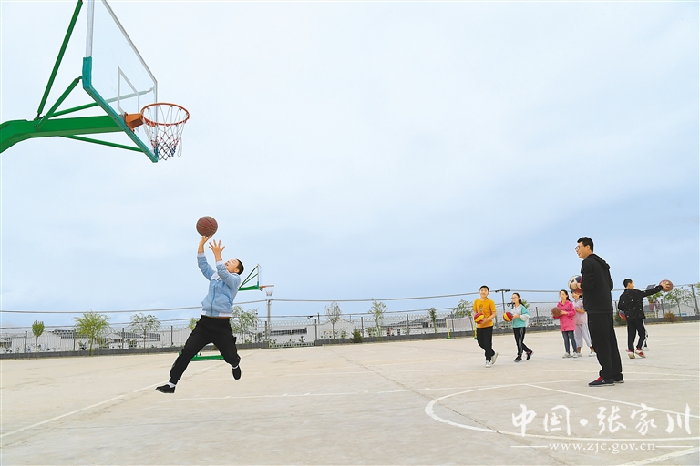 富民小学的孩子在打篮球。