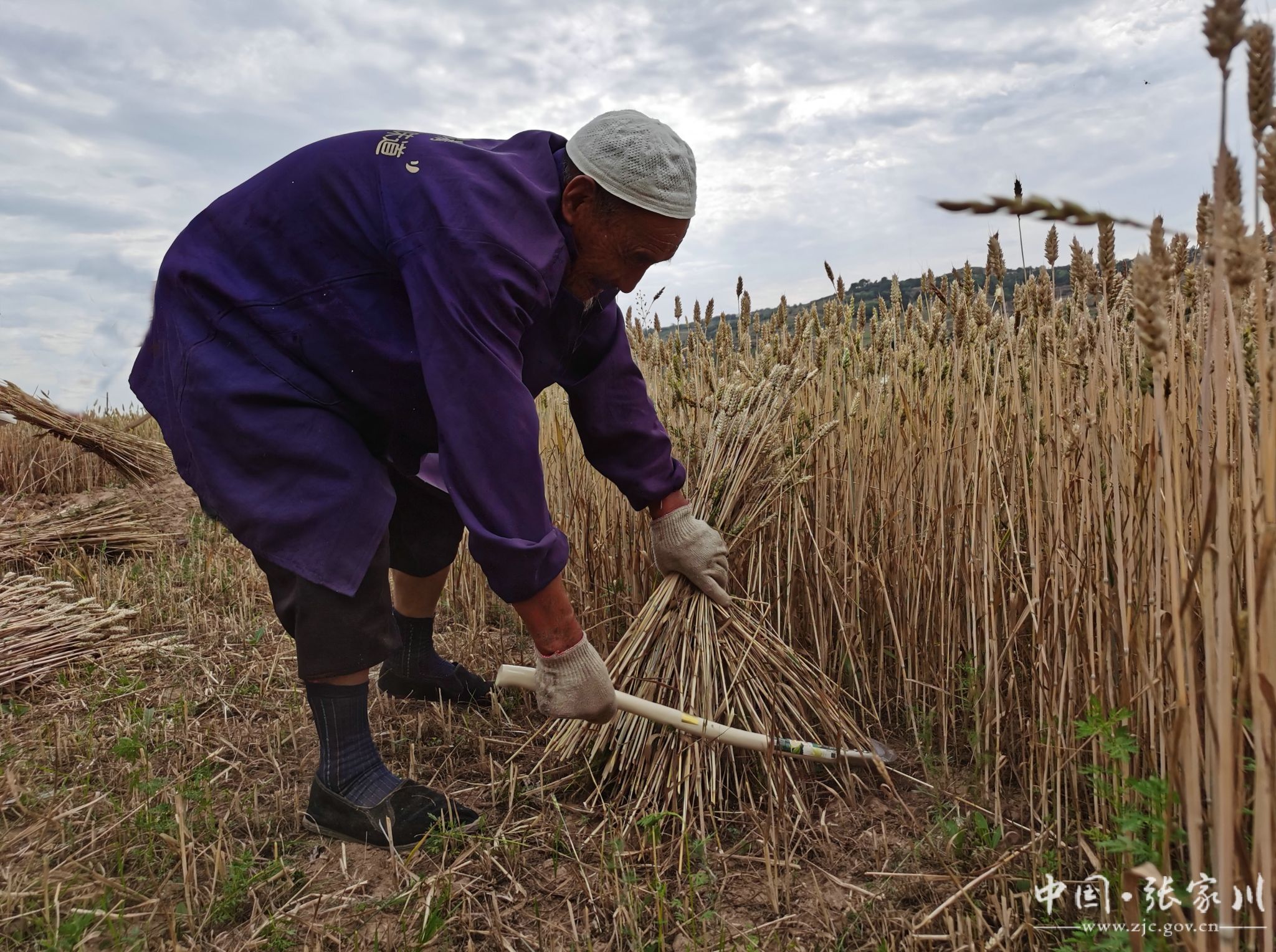 在龙山镇马黑曼村马世清老人家山坡上的麦田里,由于收割机无法进入,只能用镰刀割。“这块麦子有熟透的还有半熟的,熟透了的麦粒会掉,我不能看着麦粒掉了,每天过来挑熟透的先割了,不能浪费,要及时收了。”