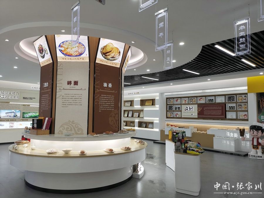 7月18日,记者走进张家川县公共实训基地的展示中心看到,具有张家川元素风格的餐饮品牌“张家川・兰州牛肉拉面”加盟店和张家川烧烤形象店十分醒目,展台上的张家川特色美食十三花、张家川锅盔、红花牛肉、醋粉、馓子等让人垂涎三尺,还有一些地方名特产琳琅满目地摆放在展柜上。电子显示屏上滚动播放着全国各地“张家川・兰州牛肉拉面”加盟店的销售情况和有关数据,以及张家川餐饮服务业发展情况的图片视频。