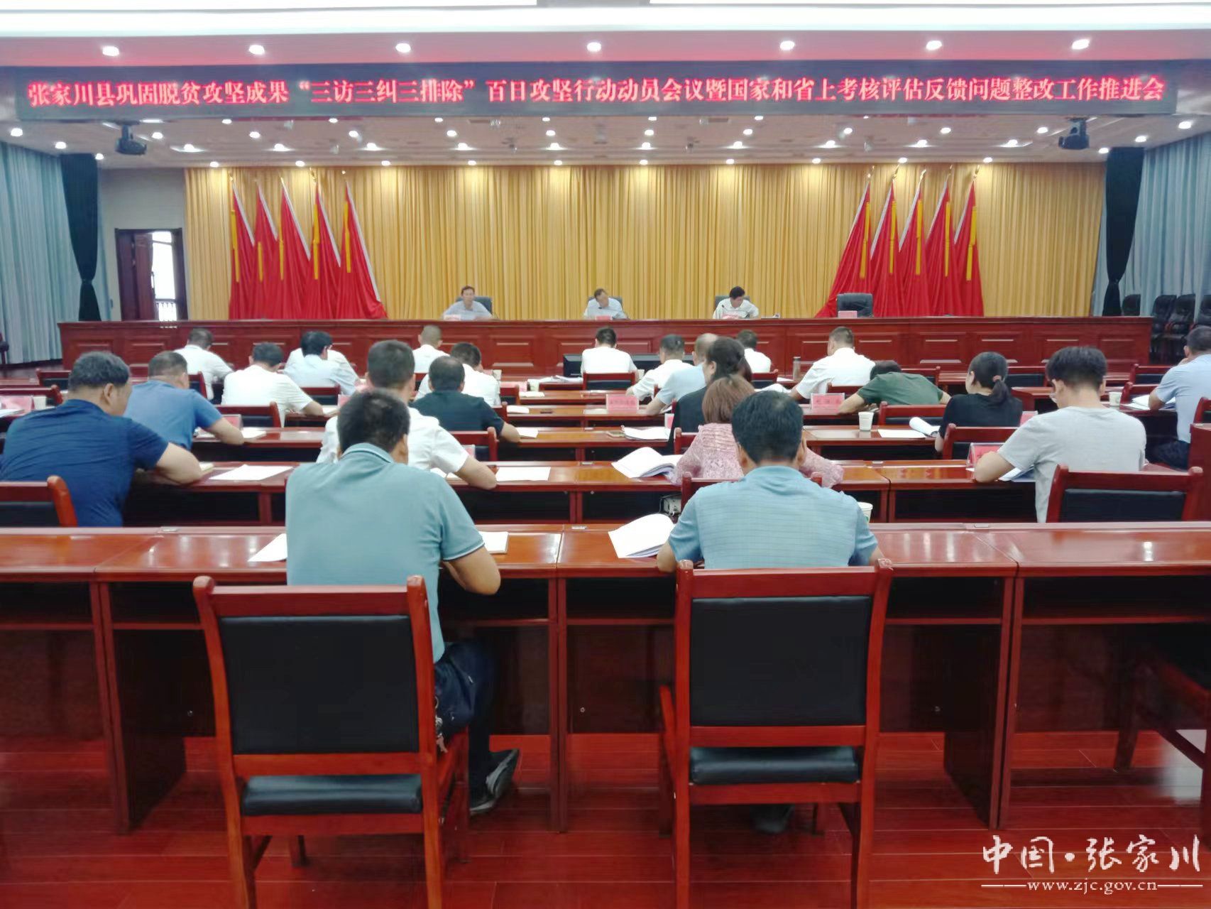 7月24日,张家川县巩固拓展脱贫攻坚成果“三访三纠三排除”百日攻坚行动动员会议暨国家和省上考核评估反馈问题整改工作推进会在行政中心礼堂召开。县委副书记张育明出席并讲话,县政府副县长铁宝禄主持会议。县直各部门负责人参加会议,15个乡镇设分会场。