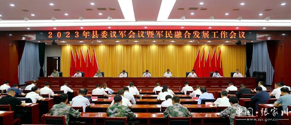 7月27日下午,中共张家川县委召开2023年议军会议暨军民融合发展工作会议,深入学习贯彻习近平强军思想和习近平总书记关于军民融合发展重要论述,传达学习中共中央总书记、国家主席、中央军委主席习近平对全军党的建设会议作出的重要指示和十四届省委军民融合发展委员会第一次会议精神,听取县人武部工作报告,开展乡镇党委书记党管武装工作述职,研究部署党管武装、国防后备力量建设和军民融合发展工作。县委书记、县人武部党委第一书记张思佳讲话,县委副书记、县长马创成主持会议。牟建林、李国恩等县四大组织领导,县国防动员委员会、军民融合发展委员会成员单位负责同志,各乡镇党委书记、武装部长参加会议。