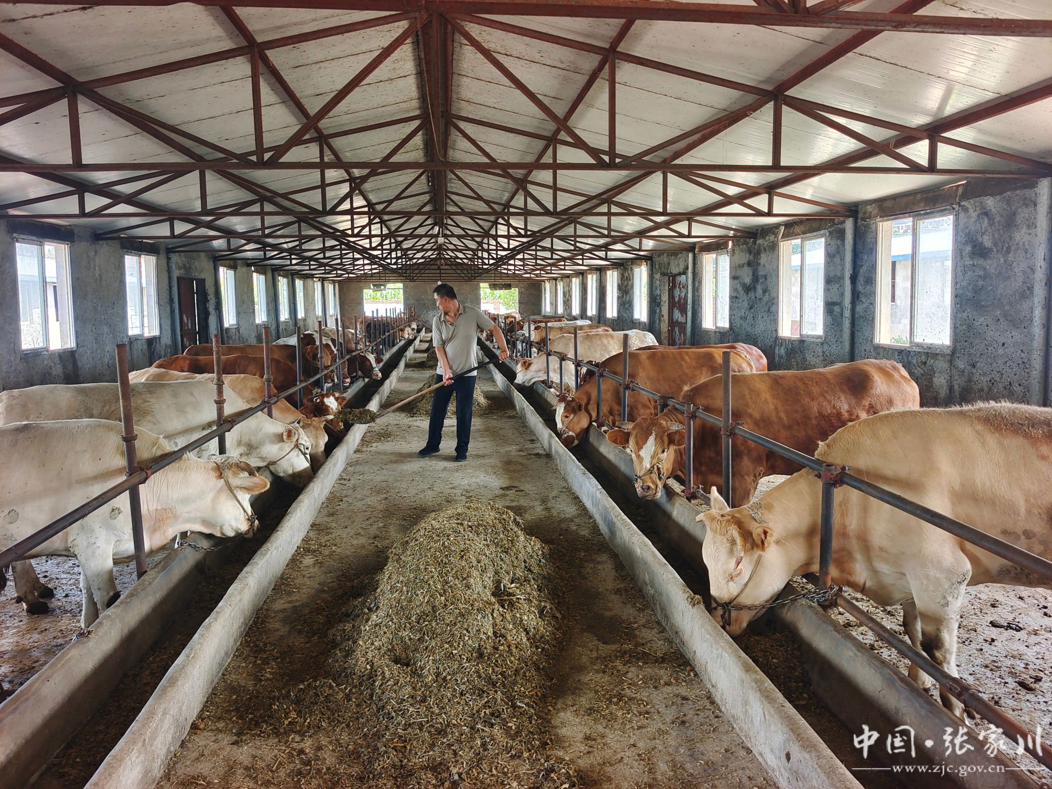张家川镇自古以来畜牧养殖基础厚实,从个体户到养殖场,从最初的牛羊鸡到新兴的鹿兔蜂,规模有大有小,畜种品类繁多。在上磨村养殖专业合作社的标准化养殖大棚里,负责人马继红正在给牛添加饲料。“合作社流转周边土地1000亩左右,全部种植饲料玉米,每年青贮饲料2万吨。目前,牛存栏二百多头,每年出栏四百多头,年产生经济效益二百多万元。”合作社负责人马继红说道。成立于2012年的上磨村养殖专业合作社,自发展以来,就注重本地红花牛的饲养、繁殖与改良,对饲草料的种植储备、动物疫病防治、粪污资源化利用等技术相当成熟。目前,已形成“以养促种、以种带养”的模式,并在2016年联合成立了惠农联农的服务合作社,拥有大大小小农业机械三十余台,为本村及附近村提供农机服务,近两年还承担了张家川镇两千多亩小麦的社会化服务项目。
