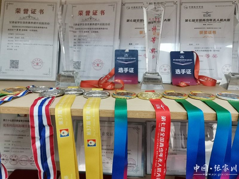 看着满屋子的奖章和作品,让人离不开眼,尤其是中国科协颁发的奖牌格外引人注目,一位有着“科创梦”的信息老师,带着一群喜欢探索的学生,共同探索,共同进步,一个又一个的“小科学家”、“小发明家”正在成长,而作为领路人的张亮老师,信念坚定,勇毅前行。