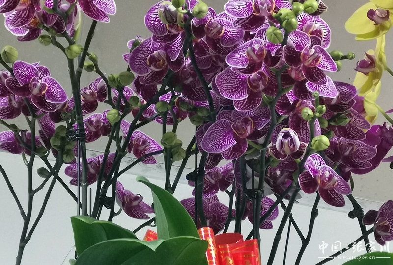 近日,记者走进张家川镇花之园花卉店,花店里春意盎然,花香扑鼻。成片的蝴蝶兰争相绽放,仿佛翩翩起舞的蝴蝶栖息在细长的花枝上,美不胜收。杜鹃花、长寿花、山茶花、红掌等各色花卉姹紫嫣红、争奇斗艳,吸引了不少顾客前来购买。