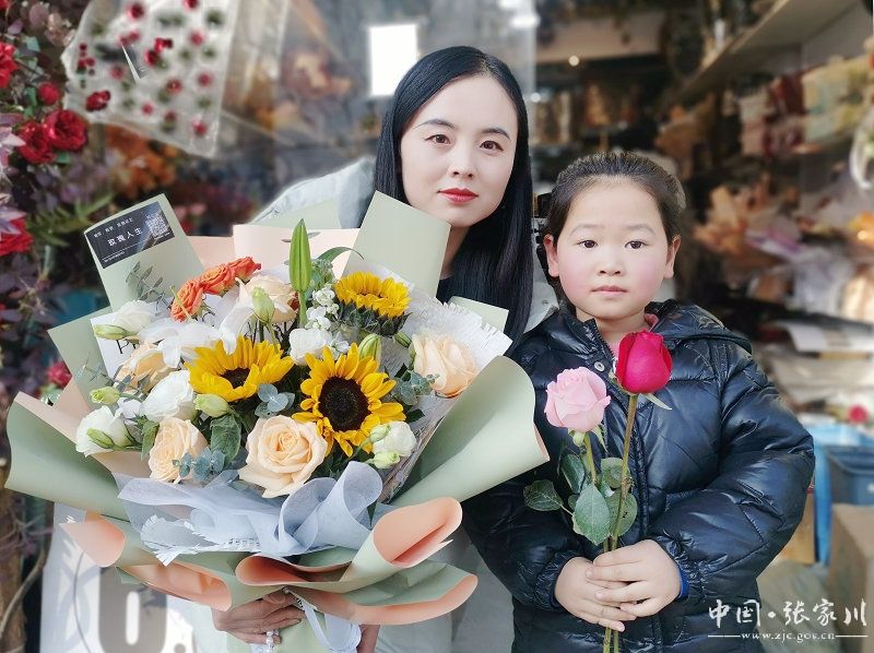 玫瑰人生鲜花店的店主马芳一边忙着向顾客推介新品,一边说:“我在张家川开鲜花店已经十多年了,随着人们生活水平的提高,人们的消费观念也变了,越来越注重仪式感。这几年我店里的生意是越来越好,遇上七夕节、三八节、母亲节、父亲节等节日,我们通常都要熬好几个通宵修剪和包装,今天我就接了五个花束订单,有结婚用的,乔迁新居用的,有送给自己的。以前鲜花是礼物,现在是生活。给自己买花,给家人买花的顾客越来越多,享受生活、取悦自我。
