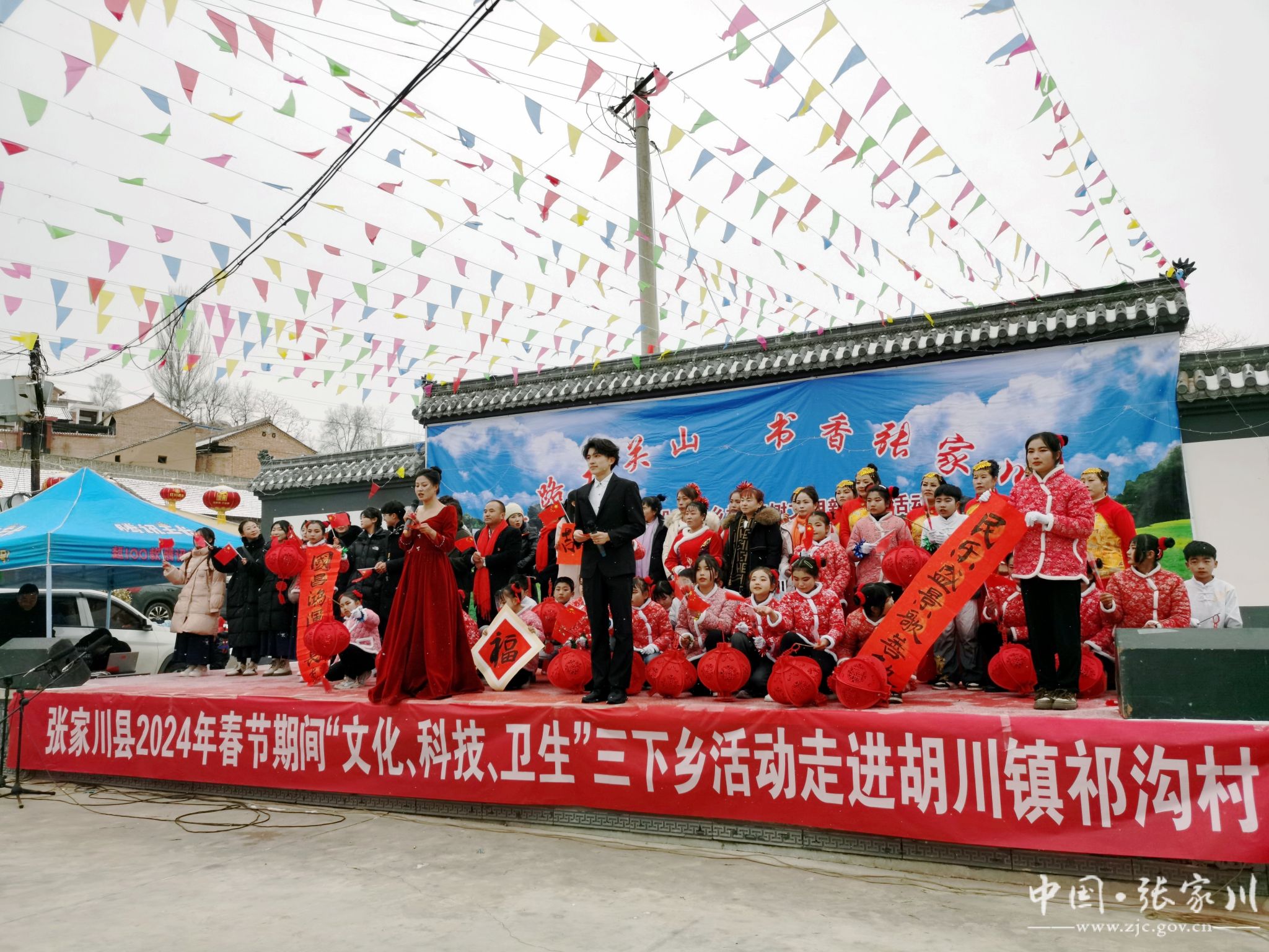瑞雪迎小年,年味愈更浓!2月2日,腊月二十三,一场久违的白雪翩然落下,室外气温也降至零下,但仍挡不住乡亲们欢快的脚步。新春来临之际,由县委宣传部牵头,县新时代文明实践中心、县文旅局、文联、文化馆、科技局、科协、卫健局等单位联合开展的张家川县2024年文化科技卫生“三下乡”活动走进胡川镇祁沟村,为当地群众送上一份丰富的文化大餐。