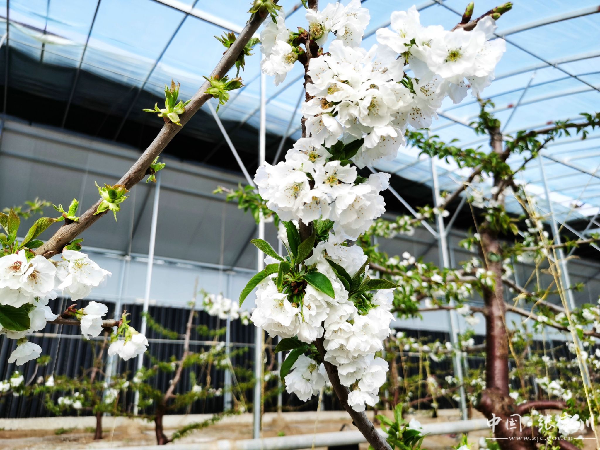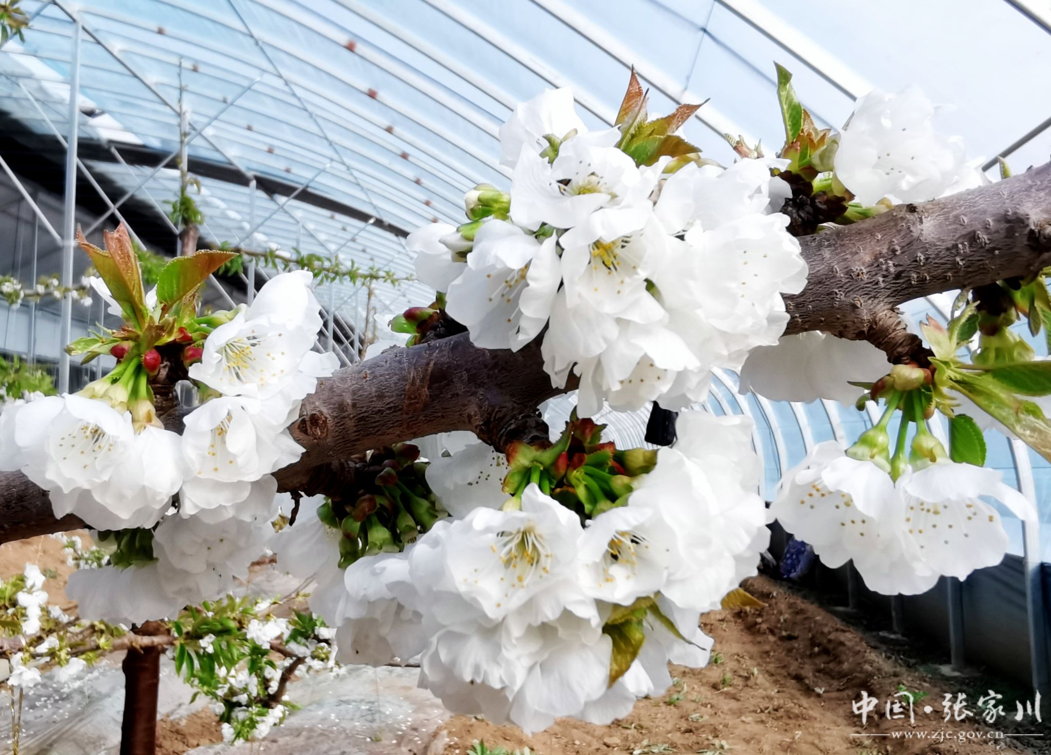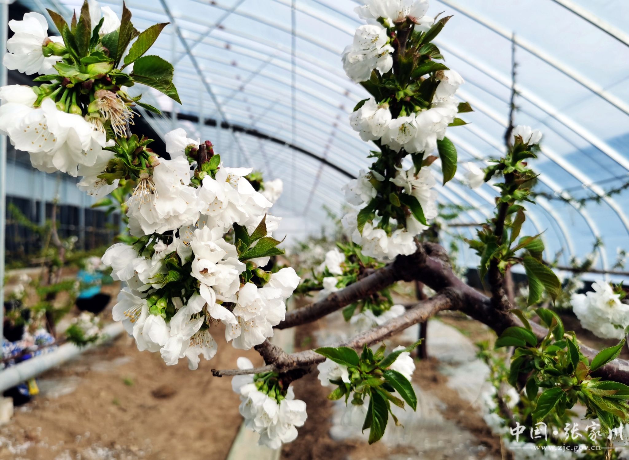 寒冬腊月,草木皆“冰”,但在张家川县现代果业产业园温室大棚里,被誉为“春来第一果”的大樱桃正花满枝头吐露芬芳,交织出满园春色。