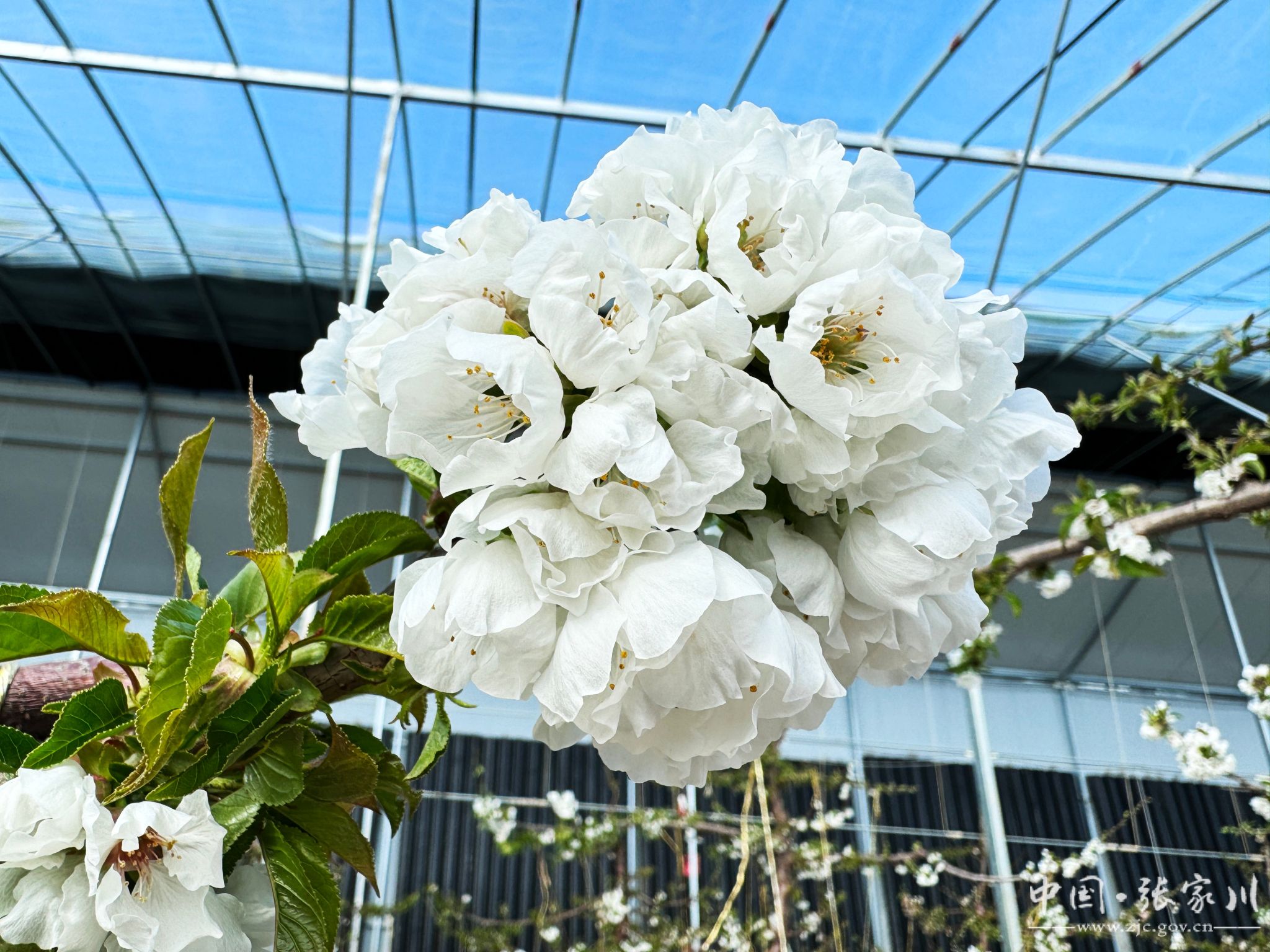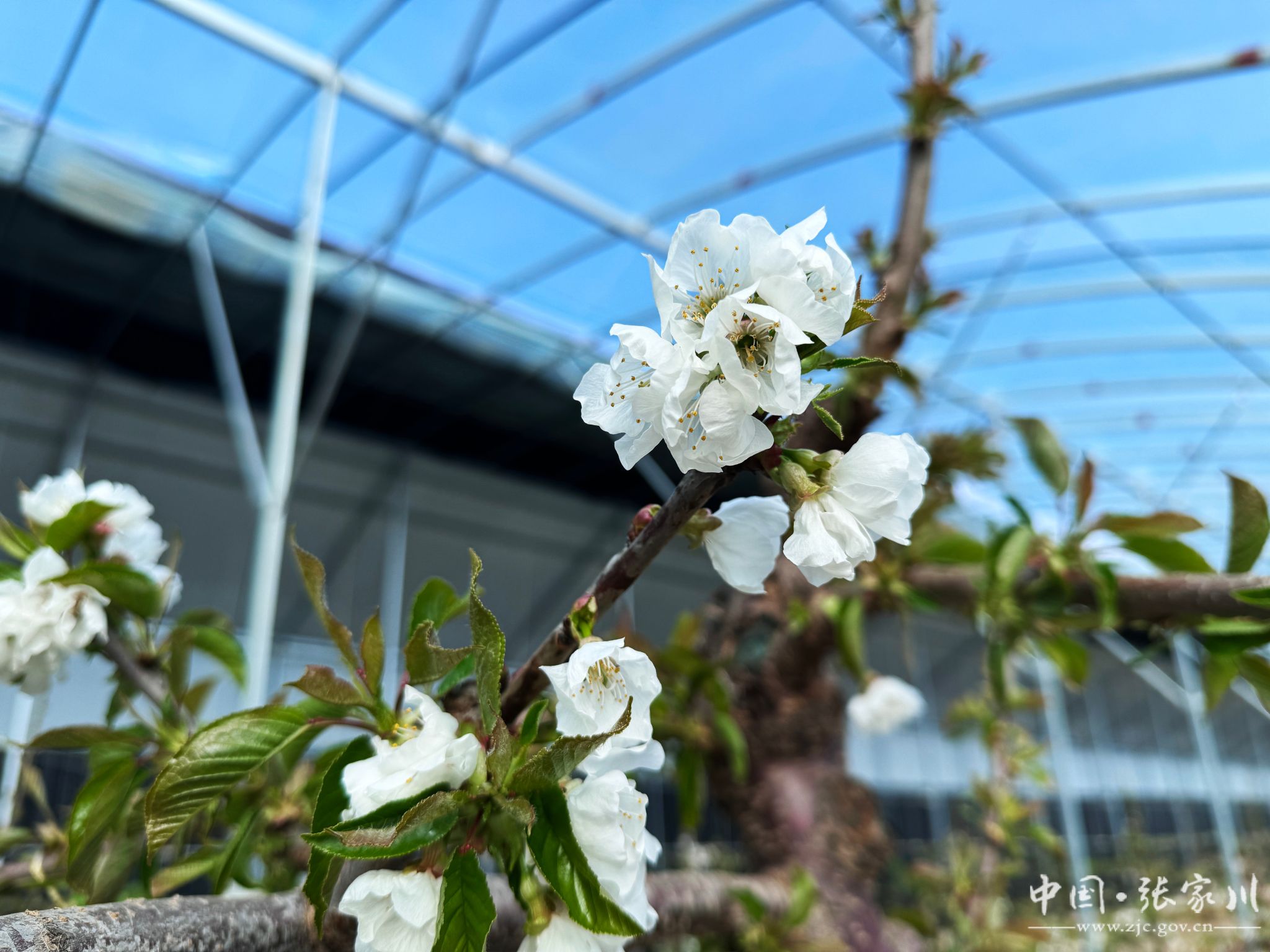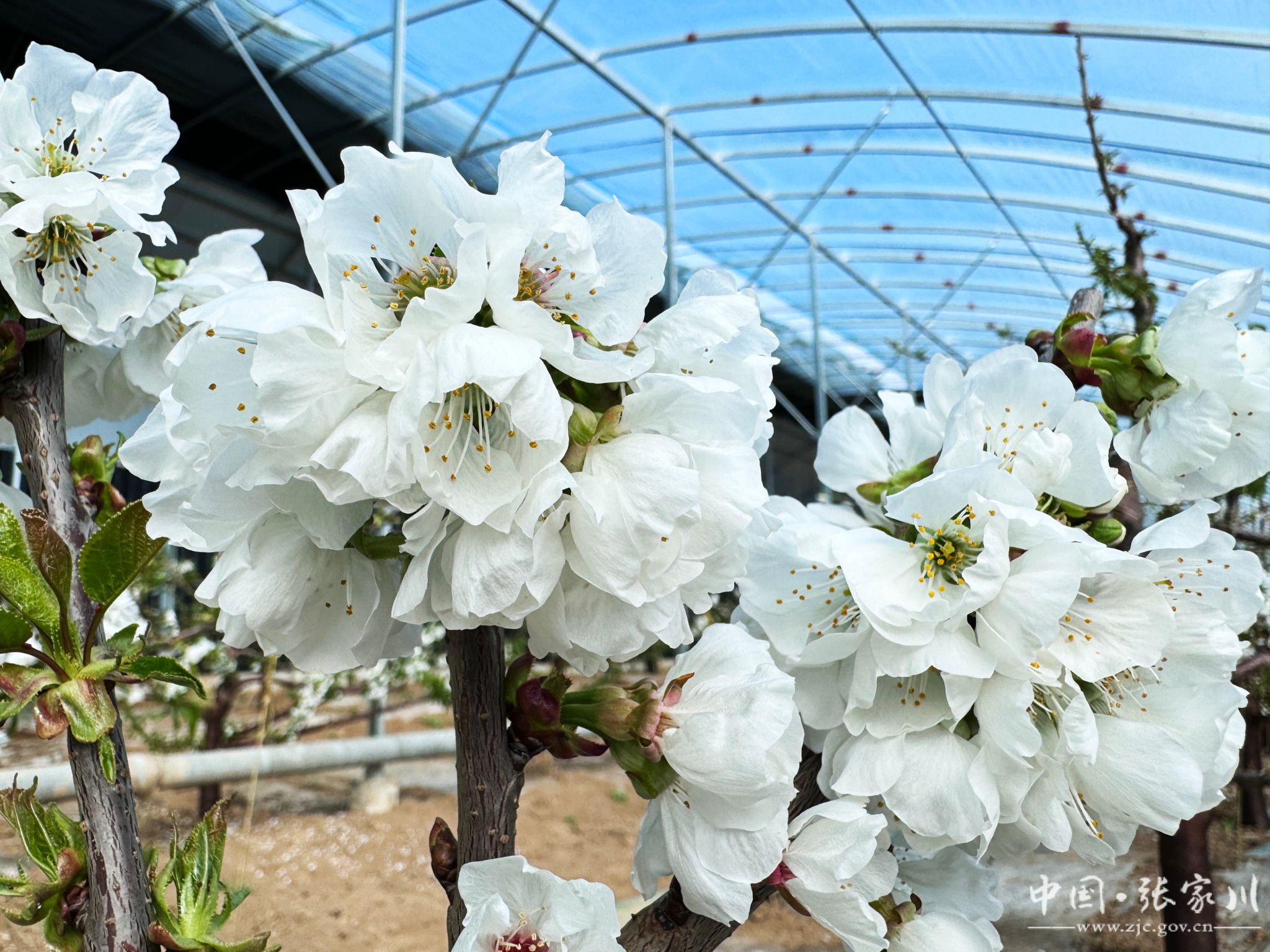 寒冬腊月,草木皆“冰”,但在张家川县现代果业产业园温室大棚里,被誉为“春来第一果”的大樱桃正花满枝头吐露芬芳,交织出满园春色。