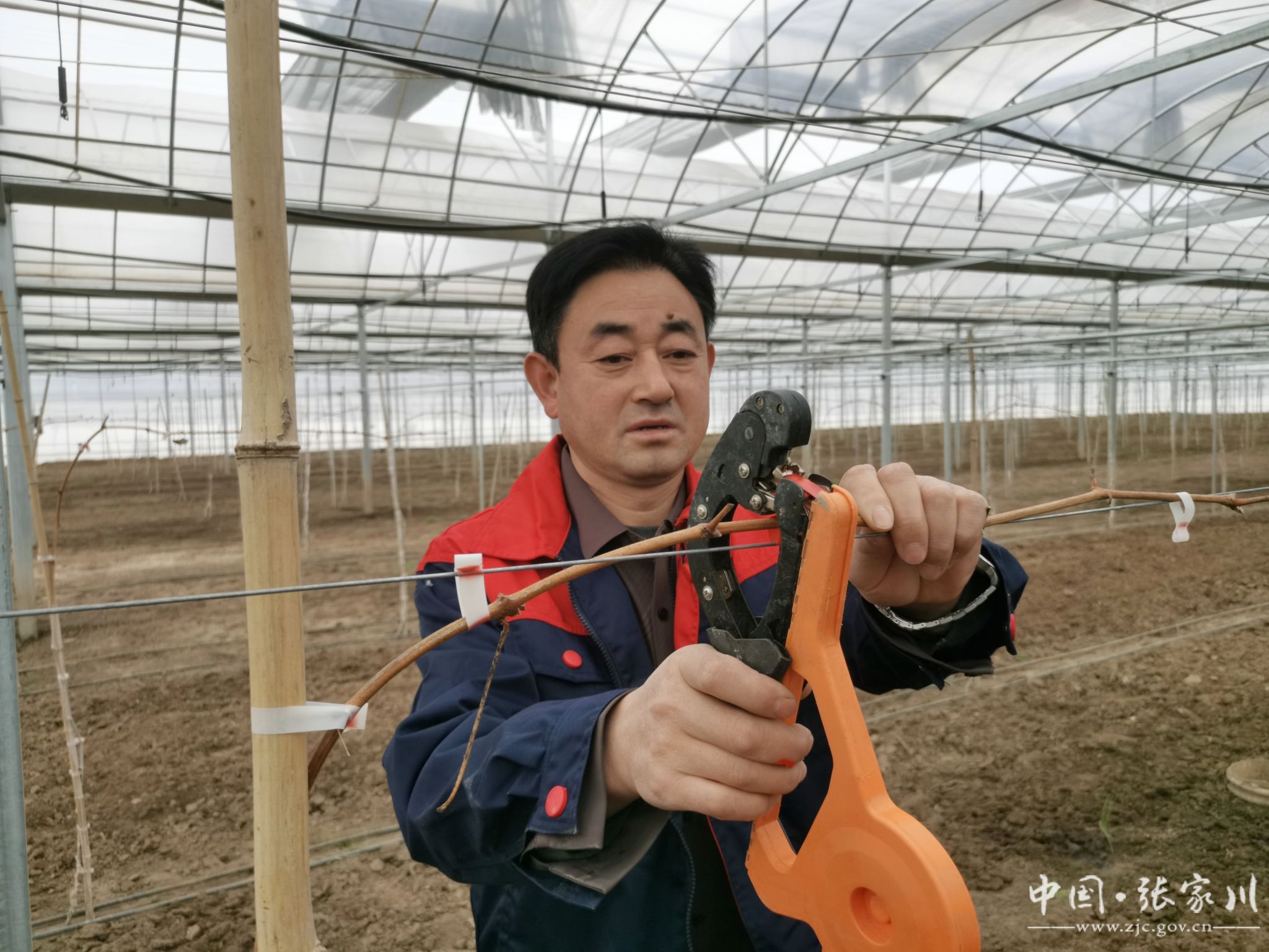 大棚内,一行行葡萄藤架整齐排开,光秃秃的枝条上已经吐出新芽,基地负责人杨建刚正组织附近村民忙着给葡萄整枝定梢,施肥浇水,忙得不亦乐乎。