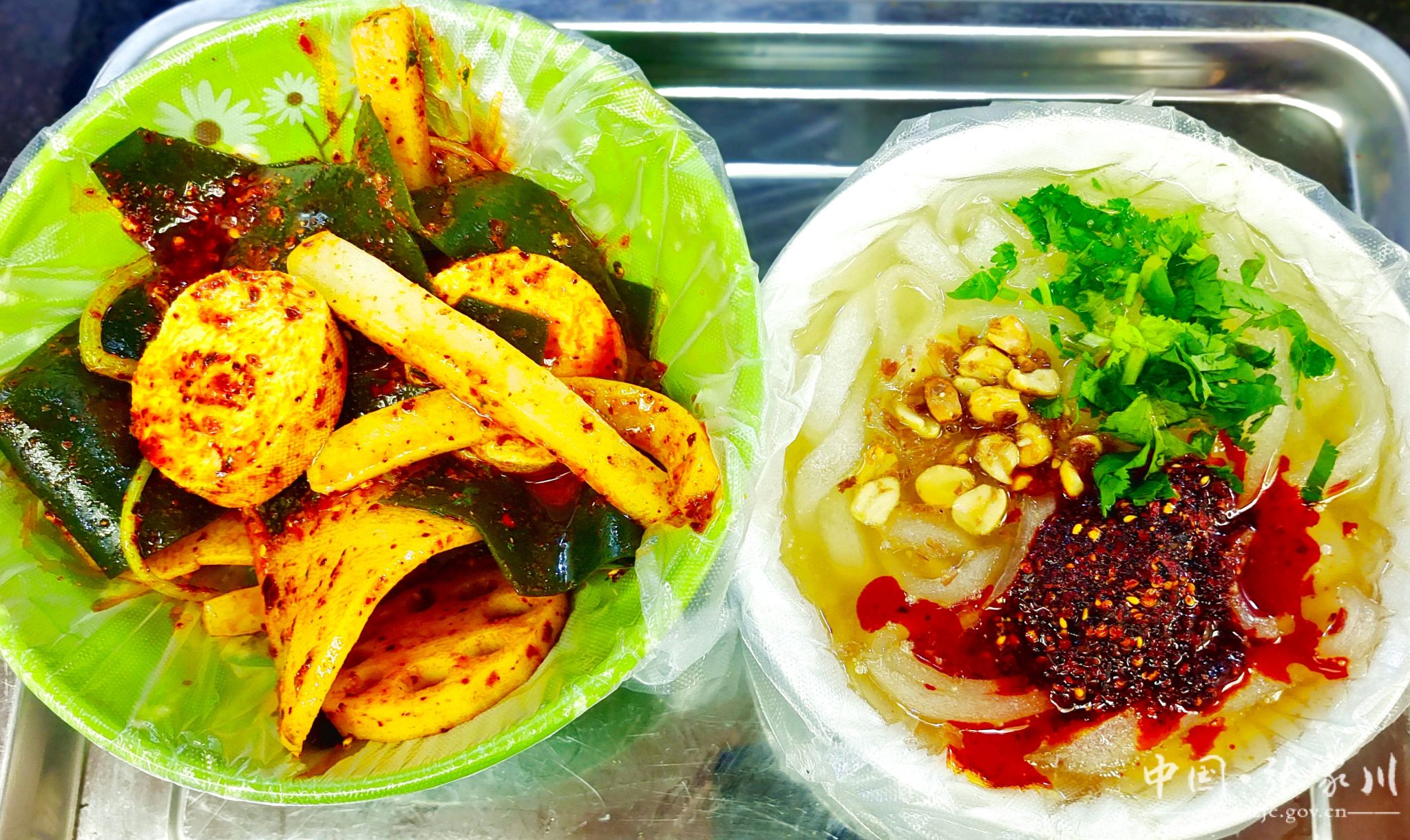 在张家川的麻辣烫店里,你选好菜、挑好粉后,老板将提前泡软的粉条放进沸腾的锅里,它们在汤汁里翻滚几分钟后就可以出锅了,出锅后浇上炸好的辣椒油、撒一点花椒粉、放上花生米和香菜,于是粉条的润滑、花椒的麻、花生的脆、辣椒的香味……夹在一起下肚后,鲜香与麻辣交织在一起,形成了一种无法言表的美妙滋味。