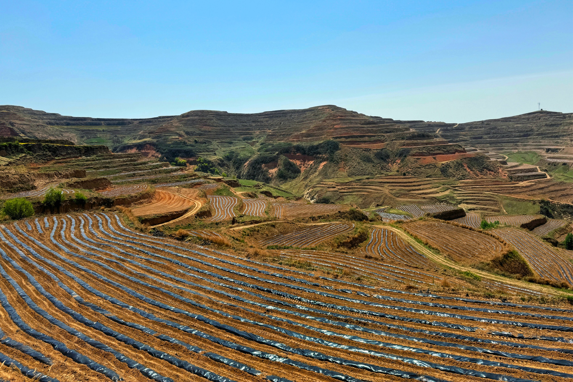 近日,在甘肃省张家川县川王镇铁洼村和海湾村的田间地头,马铃薯播种机来回穿梭,呈现出一派繁忙景象。今年,甘肃玺农汇生态农业有限公司在铁洼村和海湾村共种植马铃薯1400亩,目前种植工作正稳步推进。