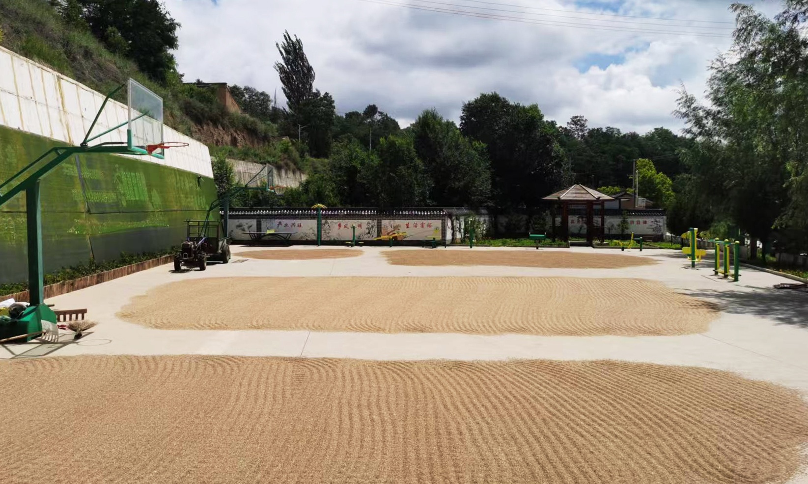 同时,恭门镇各村积极协调,将文化广场、学校操场、房前屋后等公共场所清理出来,解决群众小麦晾晒问题。此外,当地还组织志愿者帮助群众搬运、摊晒小麦,确保小麦能够及时晾晒、颗粒归仓。