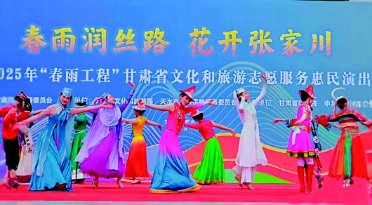 10月25日,“春雨润丝路·花开张家川”2025年甘肃省文化和旅游志愿服务惠民演出在张家川县文化广场举行。这场集歌舞、独奏、对唱于一体的文化盛宴,以“送文化”与“种文化”双轨并行,将党的关怀与文化温暖直抵基层,为铸牢中华民族共同体意识、推动县域文旅高质量发展注入强劲动力。 张融 摄