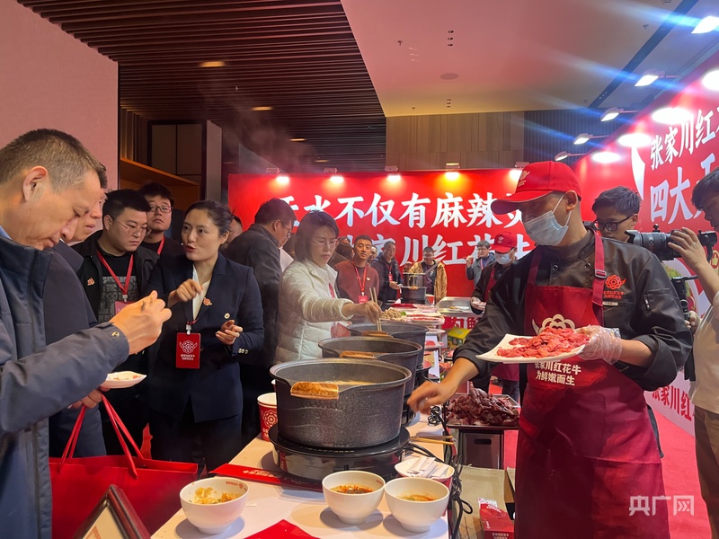 此外,现场还举办了“张家川县农特产品产销对接会”,吸引了众多企业参与。在张家川餐饮展区,嘉宾品鉴了以红花牛为原料的各类风味美食。