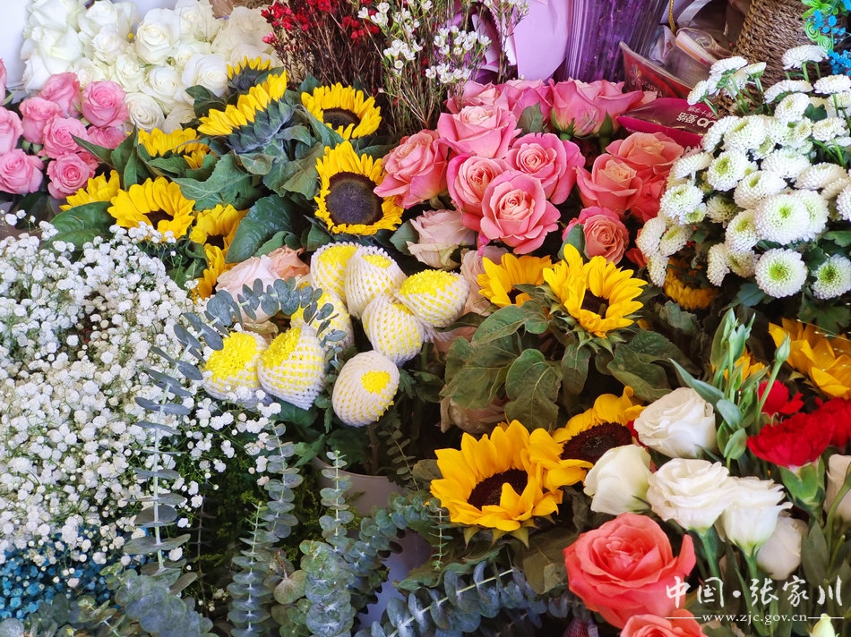 先花店店主马小燕一边忙着向顾客推介新品,一边说:“我在张家川开鲜花店已经七年了,随着人们生活水平的提高,人们的消费观念也变了,越来越注重仪式感。这七年我店里的生意是越来越好,遇上七夕节、三八节、母亲节、父亲节等节日,我们通常都要熬三四个通宵修剪和包装。元旦快到了,店里为大家准备了品种多样的鲜花,这两天顾客都来购买各式花卉,给新年增添喜庆的色彩。”