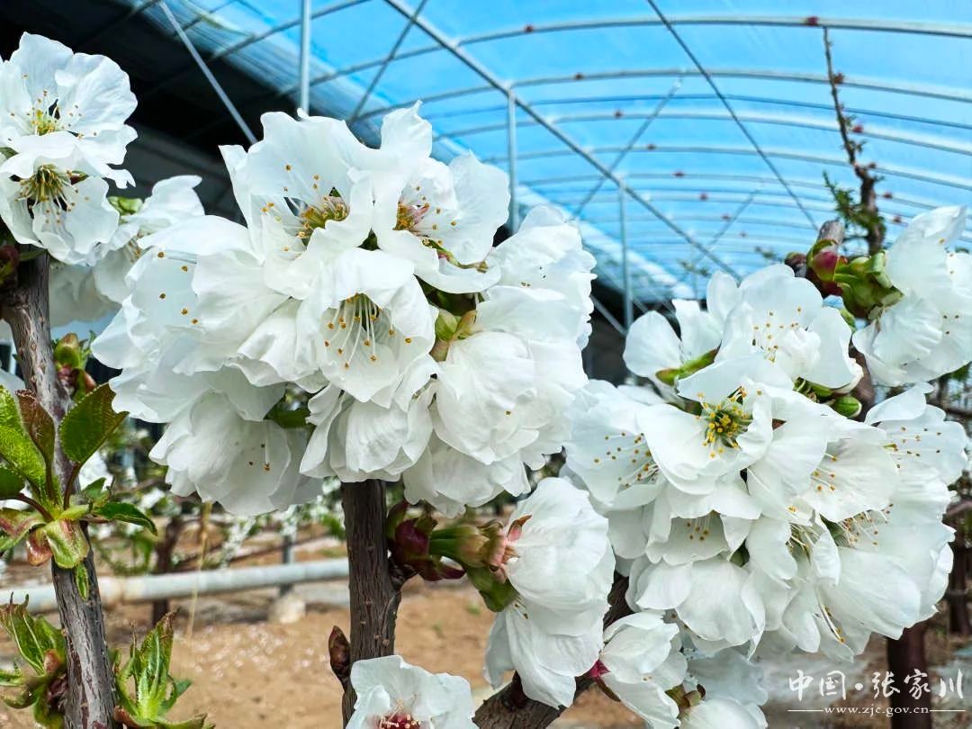 寒冬腊月,草木皆“冰”,但在张家川县现代果业产业园温室大棚里,被誉为“春来第一果”的大樱桃正花满枝头吐露芬芳,交织出满园春色。
