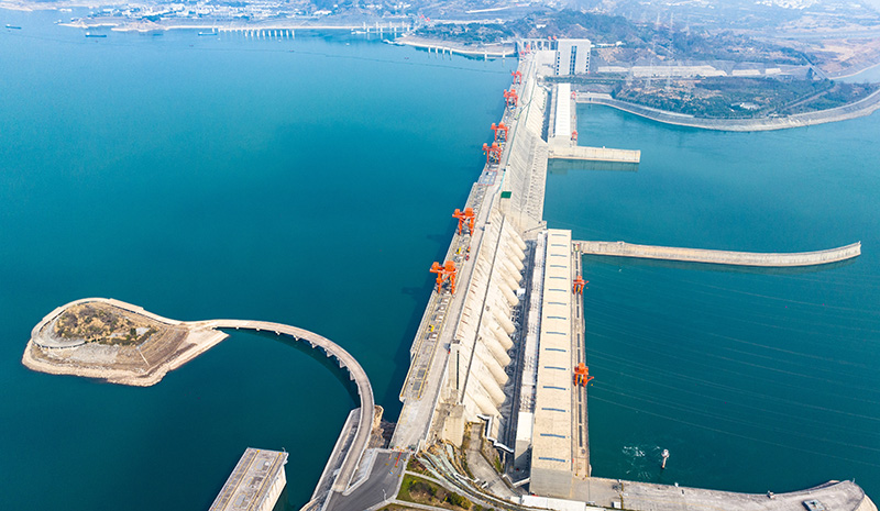 这是2月3日在湖北省宜昌市拍摄的三峡枢纽全景(无人机照片)。新华社发(郑家裕 摄)