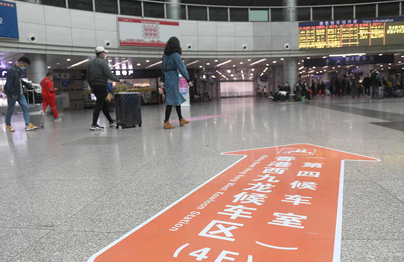 广州东站里的广深港高铁候车室指引标识(1月12日摄)。新华社记者 卢汉欣 摄