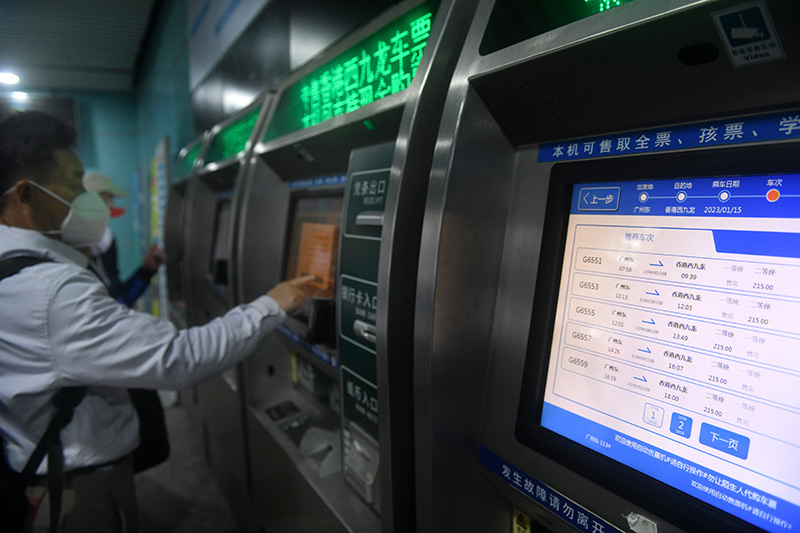 1月12日,乘客在广州东站售票厅购票。新华社记者 卢汉欣 摄