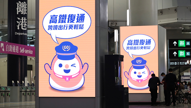 1月12日在香港的西九龙站拍摄的高铁复通广告宣传。新华社记者 李钢 摄