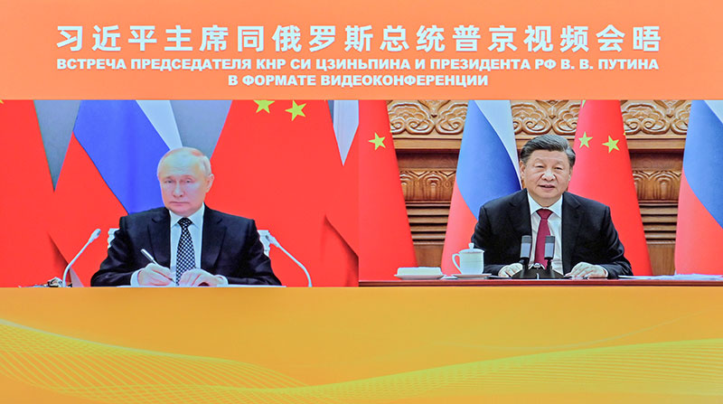 12月30日下午,国家主席习近平在北京同俄罗斯总统普京举行视频会晤。新华社记者 岳月伟 摄