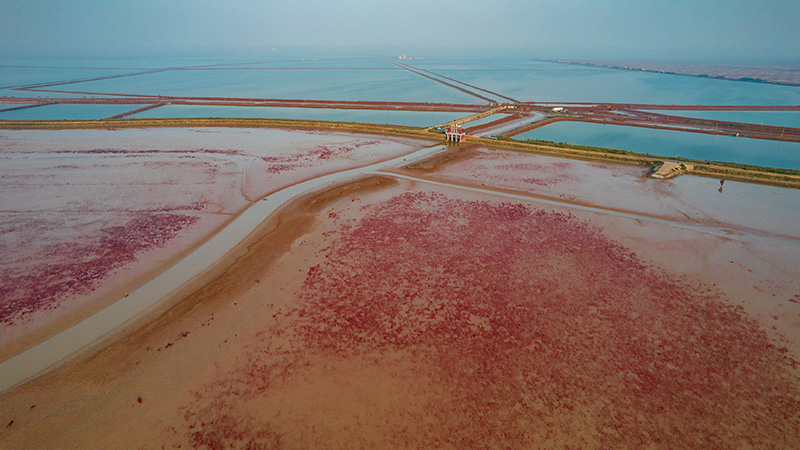 在山东黄河三角洲国家级自然保护区拍摄的湿地景色(无人机照片,2022年9月18日摄)。新华社记者 范长国 摄