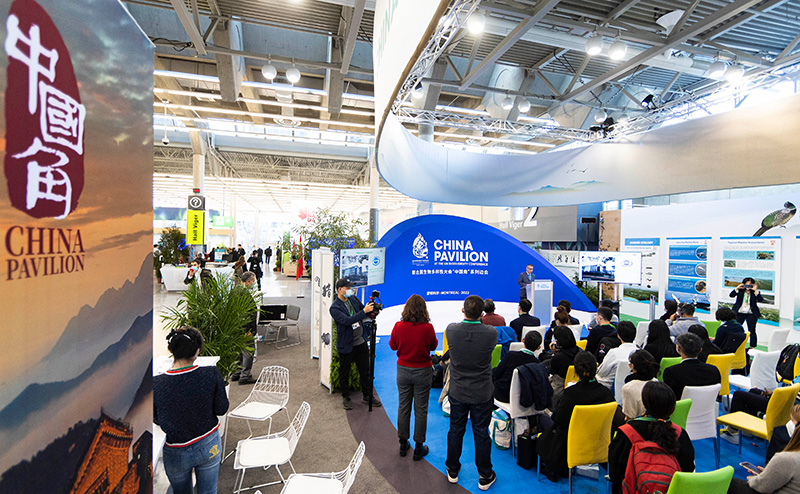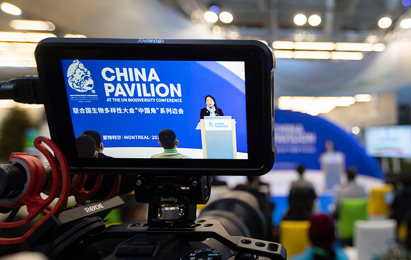 12月8日,在加拿大蒙特利尔举行的《生物多样性公约》第十五次缔约方大会(COP15)第二阶段会议上,中国角开展的一场边会活动聚焦生态保护红线。 新华社发(邹峥 摄)