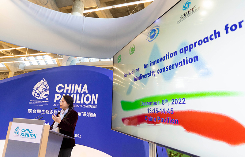 12月8日,在加拿大蒙特利尔举行的《生物多样性公约》第十五次缔约方大会(COP15)第二阶段会议上,世界自然基金会(国际)全球政策与倡导总监李琳出席中国角举办的生态保护红线边会时发言。 新华社发(邹峥 摄)