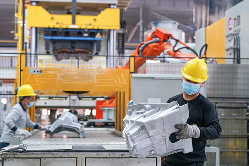 11月7日,在安徽省马鞍山市含山县辉晗精密机械有限公司,工人在压铸生产线上工作。新华社记者 刘军喜 摄