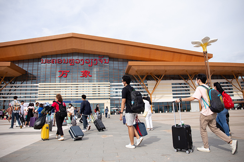 11月25日,乘客准备进入老挝万象火车站乘车。新华社发(凯乔 摄)