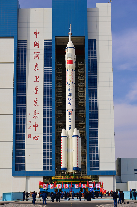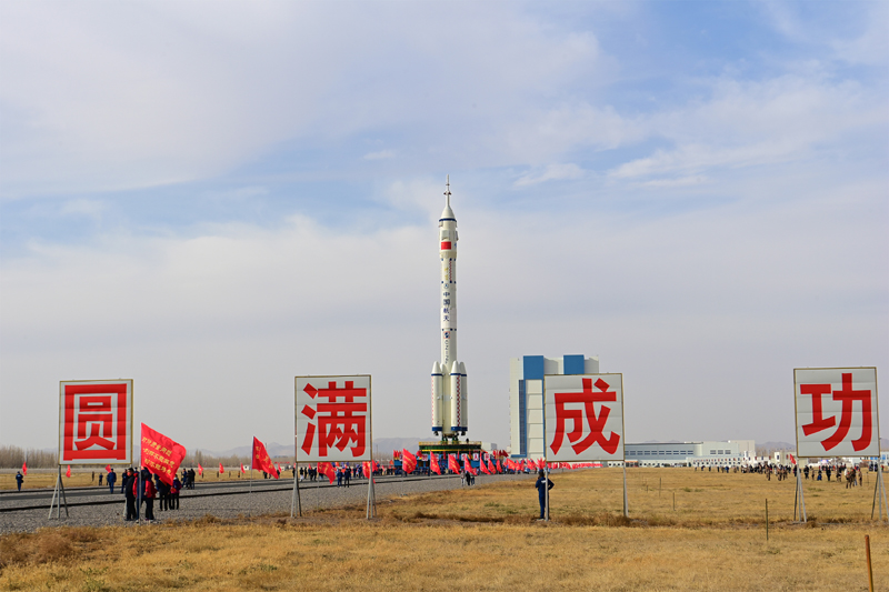 11月21日,神舟十五号载人飞船与长征二号F遥十五运载火箭组合体转运至发射区。新华社发(汪江波 摄)