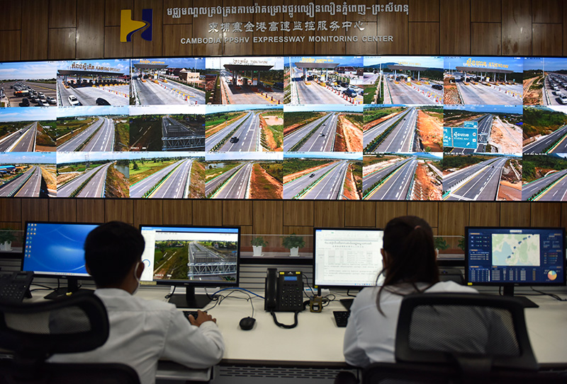 2022年11月7日,工作人员在柬埔寨首都金边的金港高速监控服务中心工作。新华社记者 吴长伟 摄